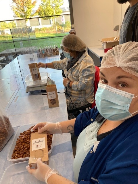 A travers cette nouvelle expérience, les travailleurs de l’ESAT démontrent une nouvelle fois leur capacité d’adaptation et leur professionnalisme. Pour des raisons d’hygiène, le conditionnement est effectué avec toutes les précautions nécessaires.