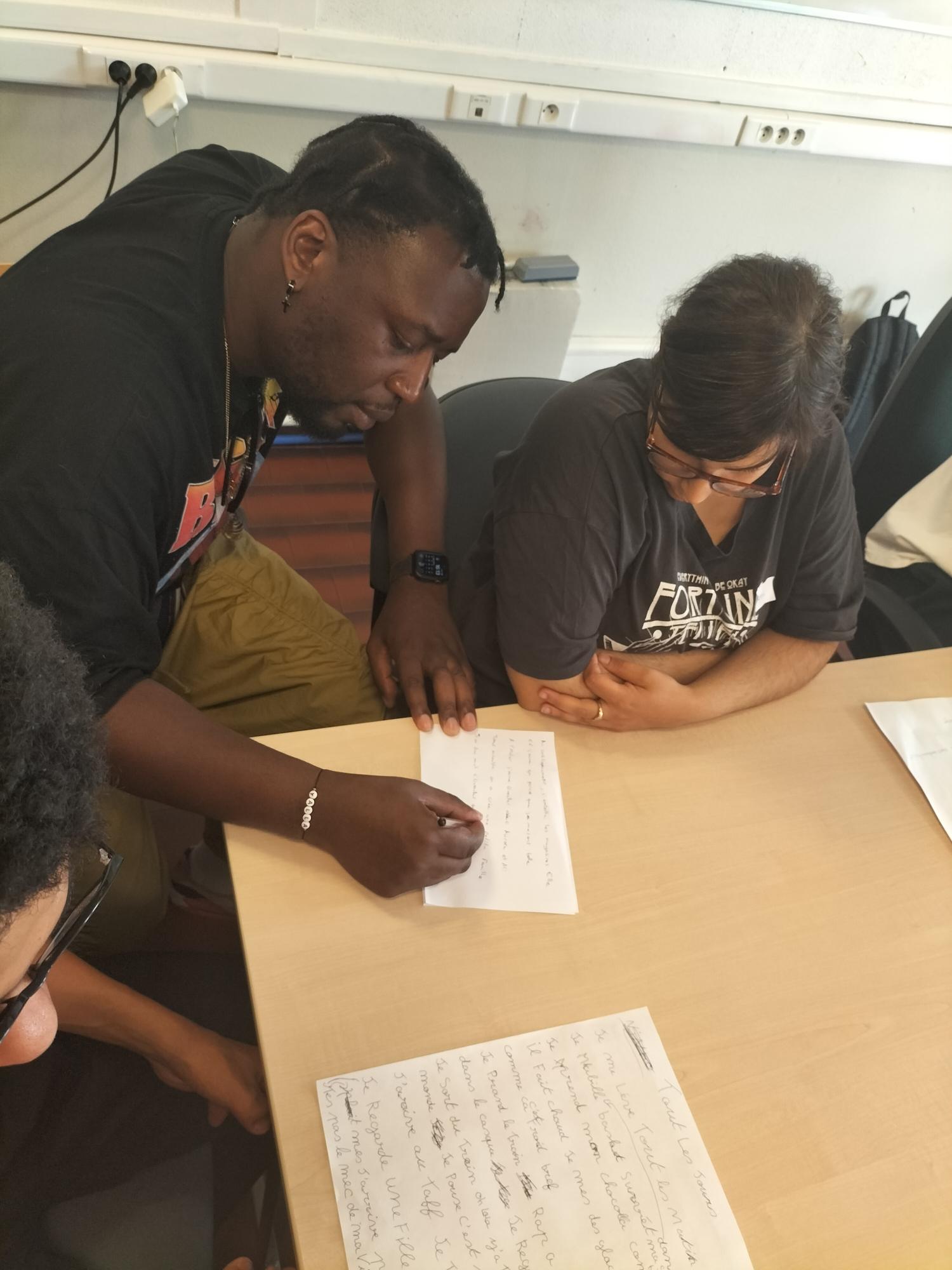 Le musicien, compositeur et beatmaker a accompagné l’atelier écriture où les participants ont travaillé en harmonie.Thaïs d’Unis cité nous a mis en lien avec l’Ecole de la 2 ème Chance et Mr KAYZ, célèbre rappeur qui est venu partager sa passion pour les mots.
