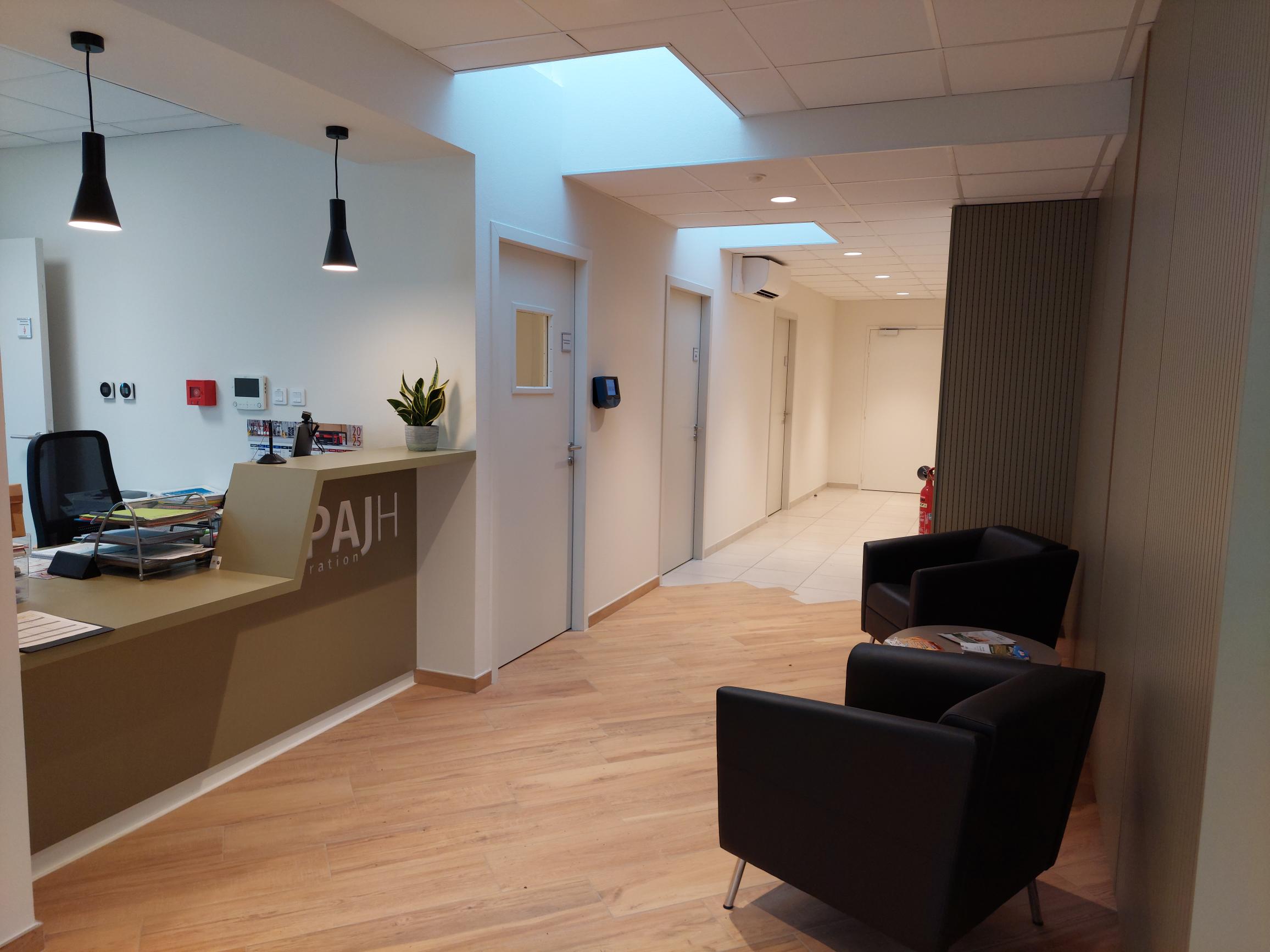 La rénovation du bâtiment a permis une modernisation complète des espaces, avec une attention particulière portée à l’accessibilité et à l’ergonomie. Les aménagements réalisés favorisent désormais une meilleure circulation, des postes de travail plus adaptés et des locaux plus lumineux et confortables.