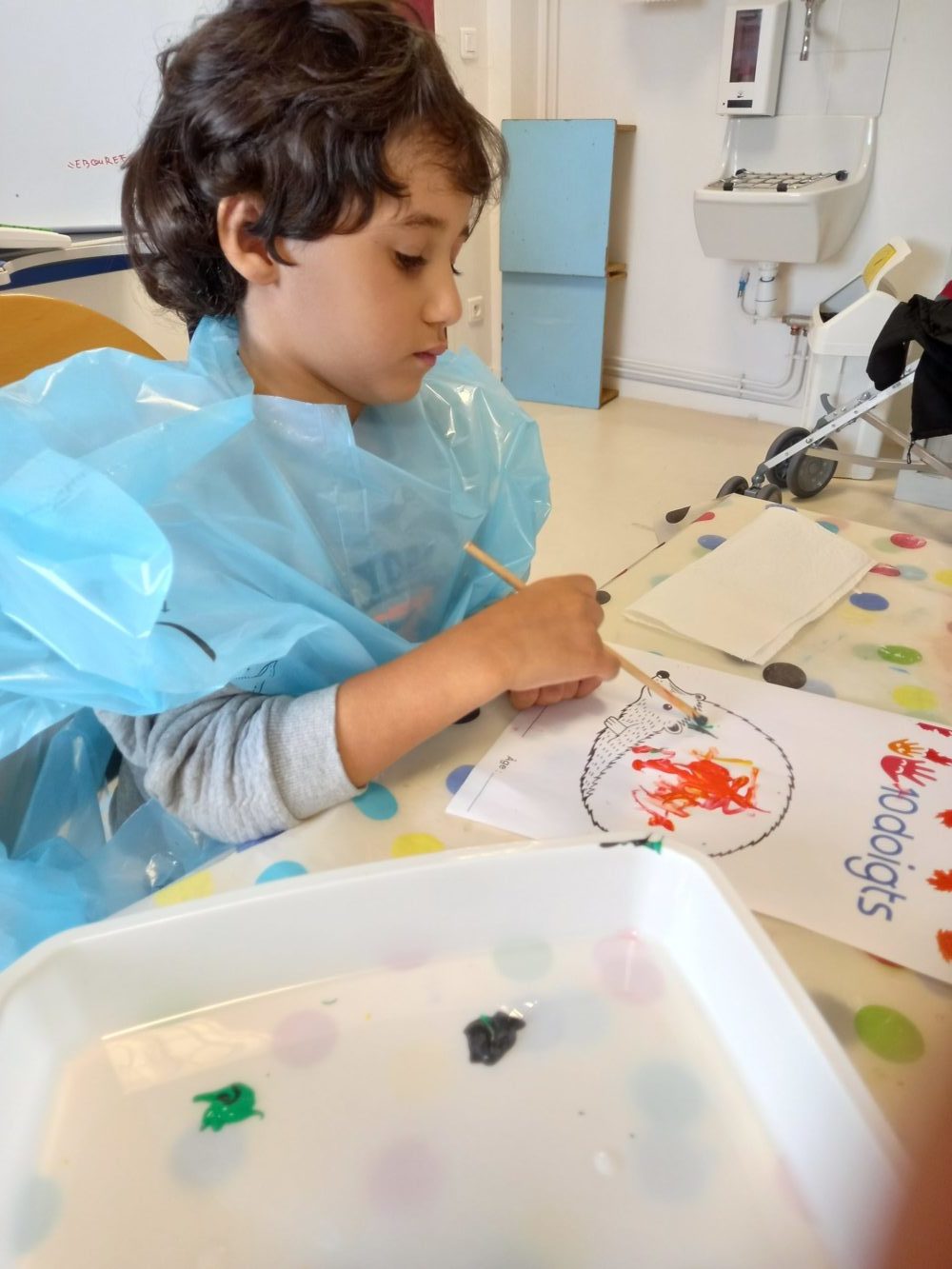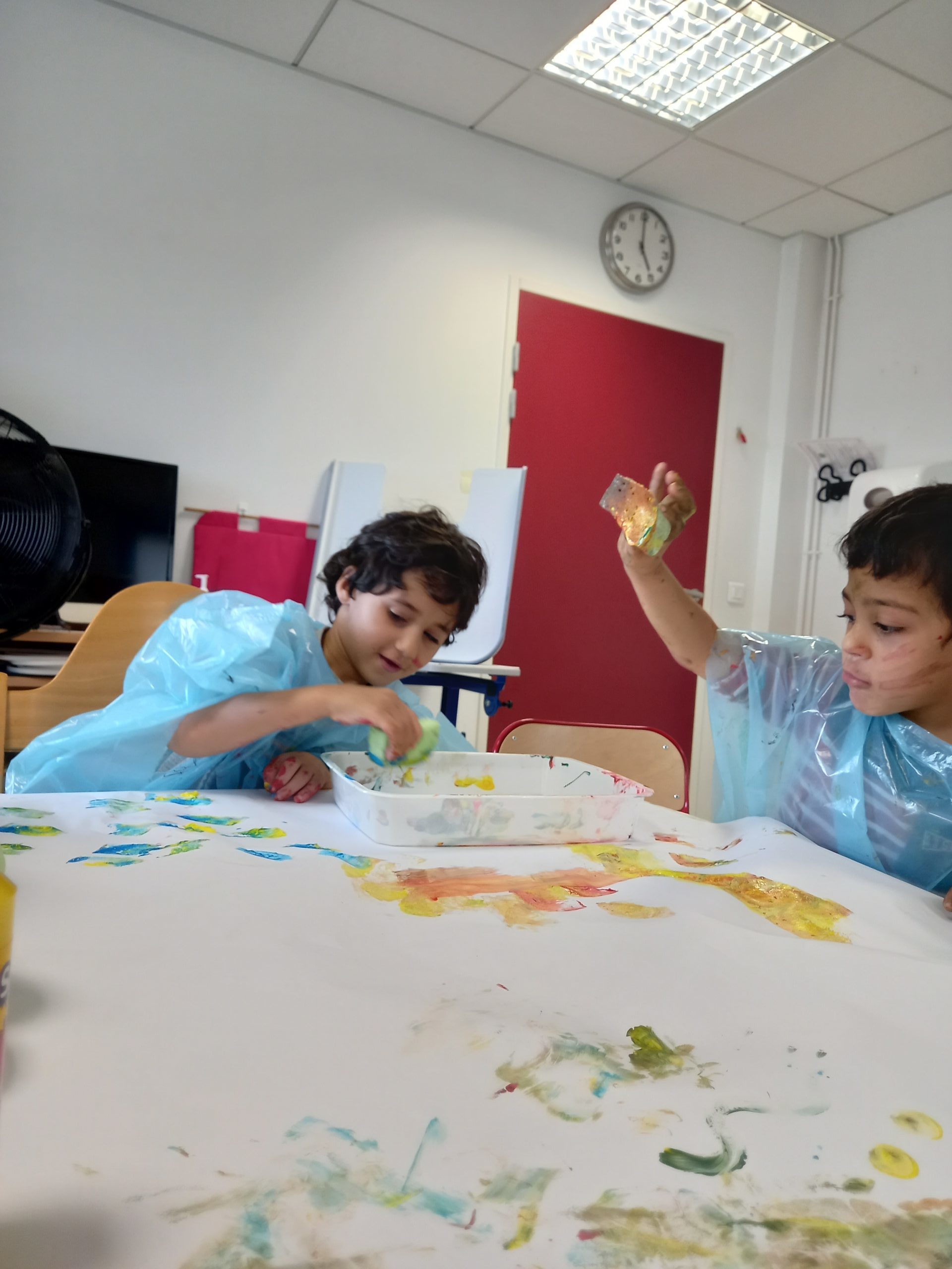 Atelier Peinture au SESSAD avec Adam et Ismaël, le 27/10/2022, mené par Roxane et Jennifer