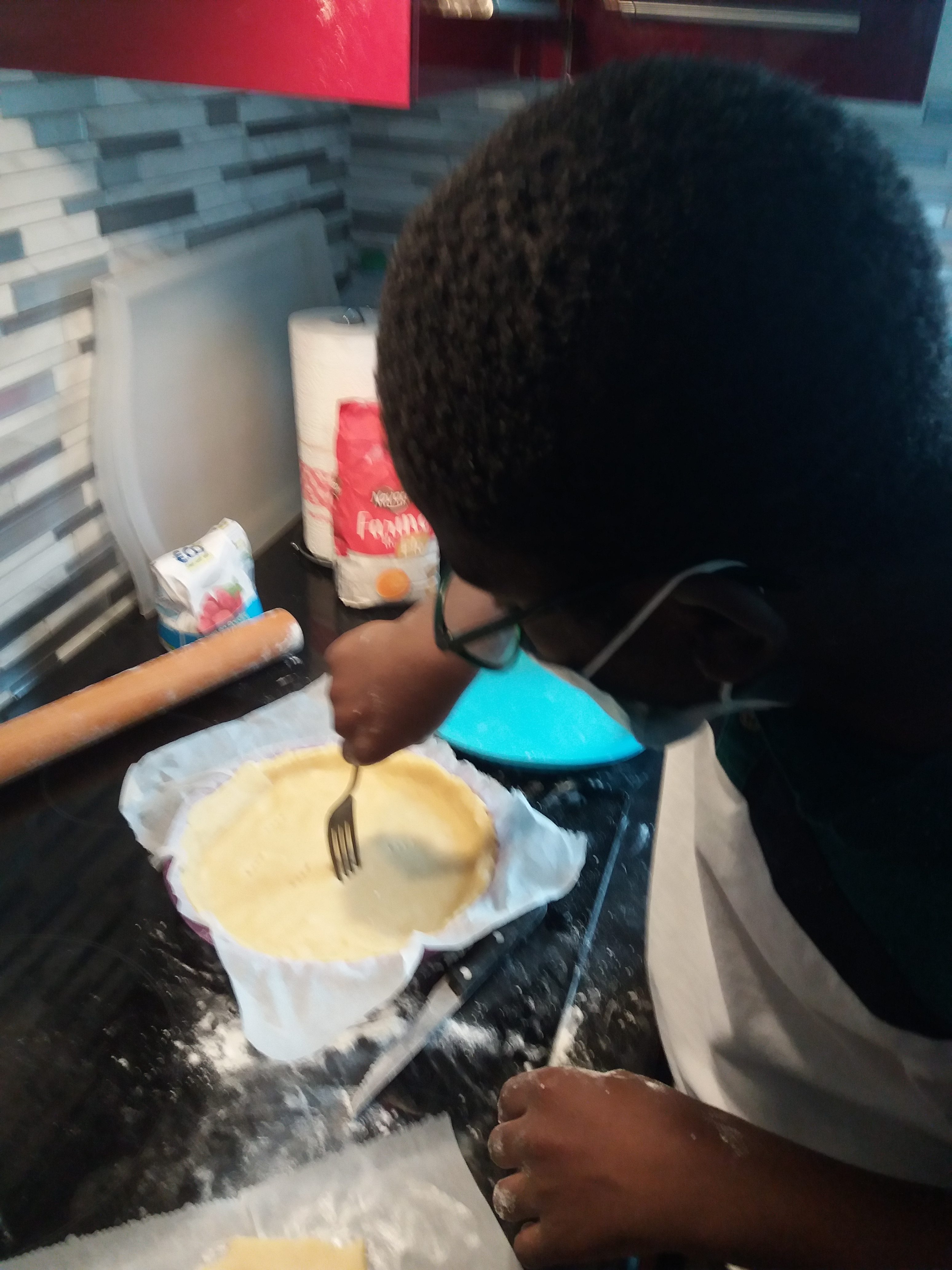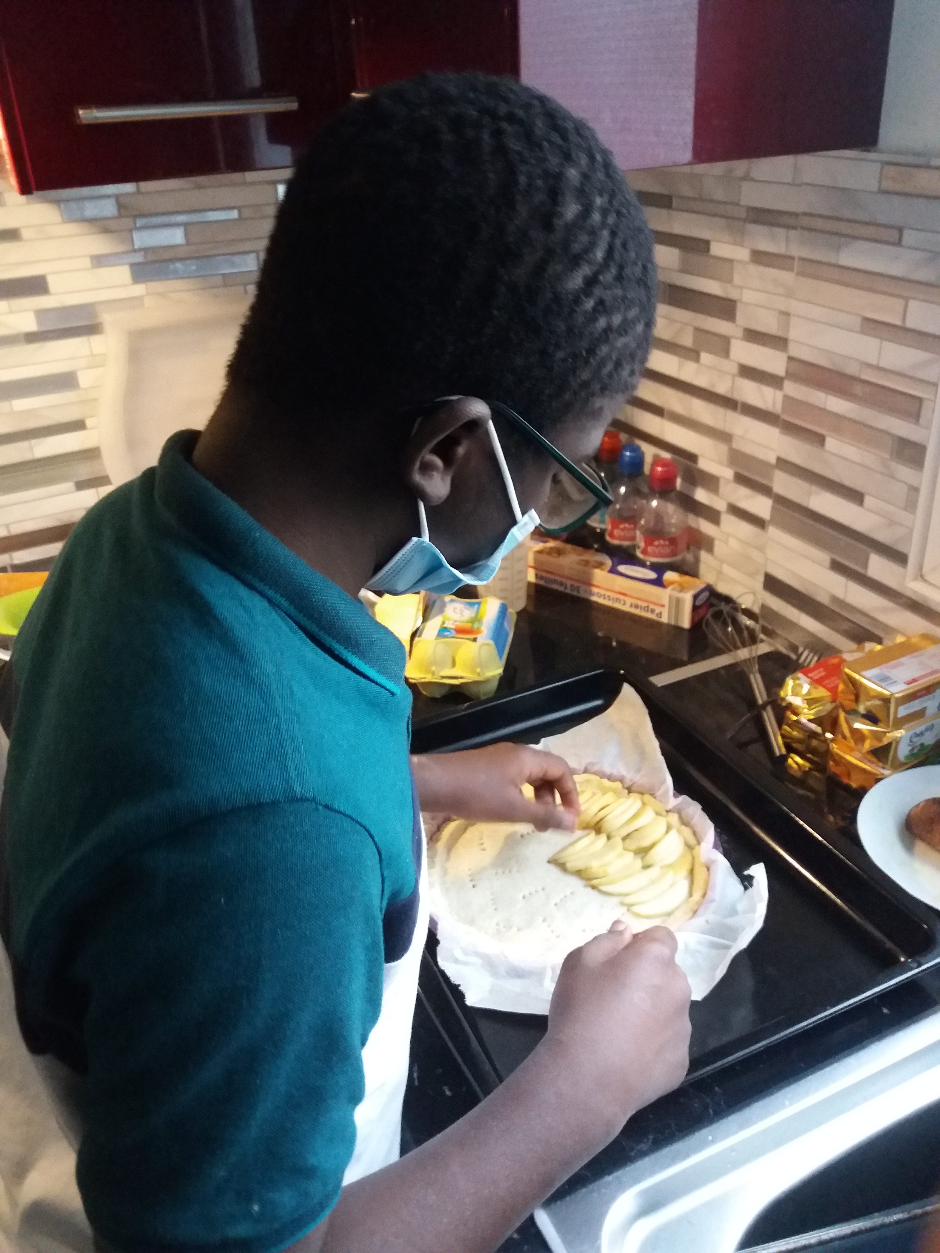 Un vendredi sur deux, c’est groupe autonomie. Juelson a préparé une tarte aux pommes maison. Il a préparé lui-même la pâte, laver/éplucher/couper les pommes et il a disposé le tout dans son moule. Cela donne envie….