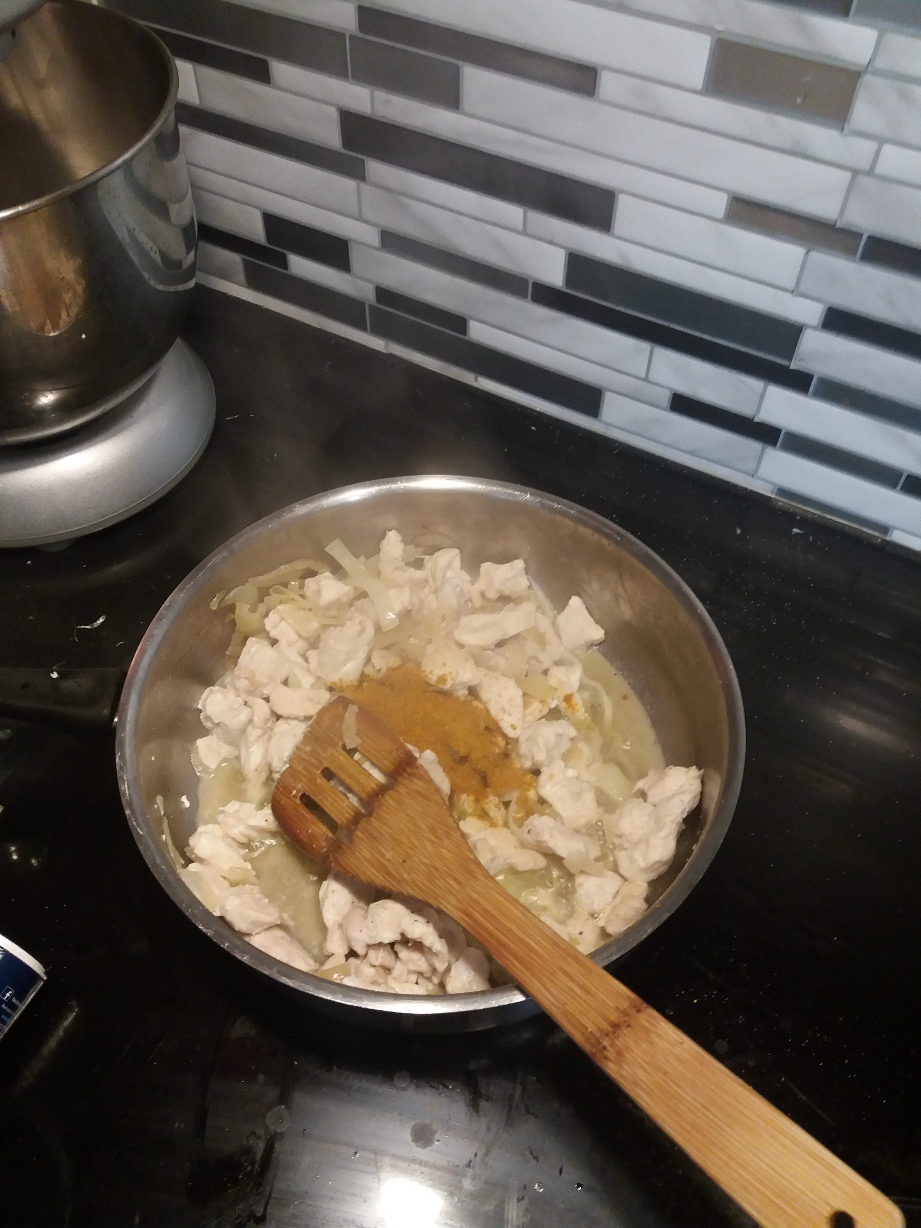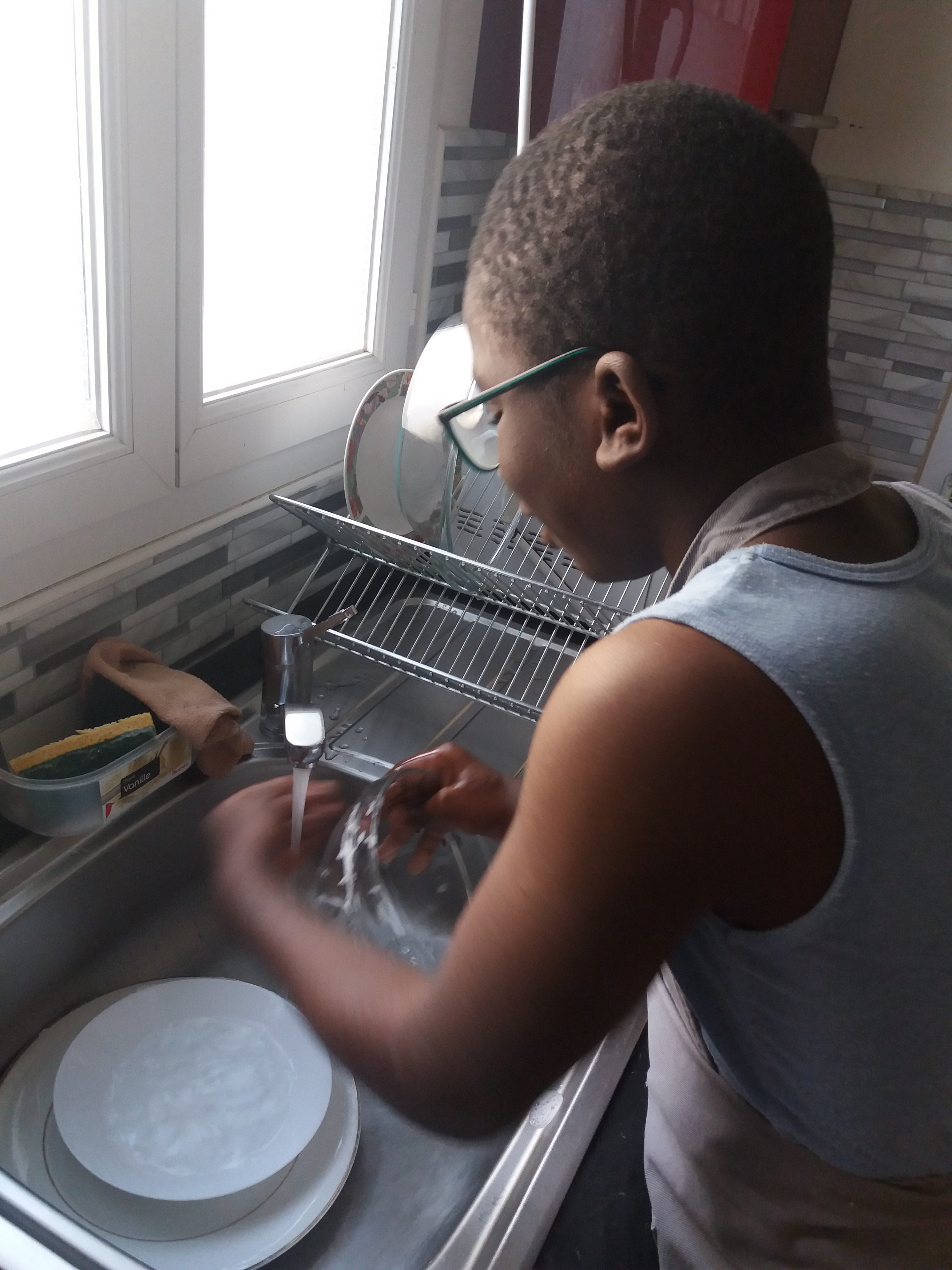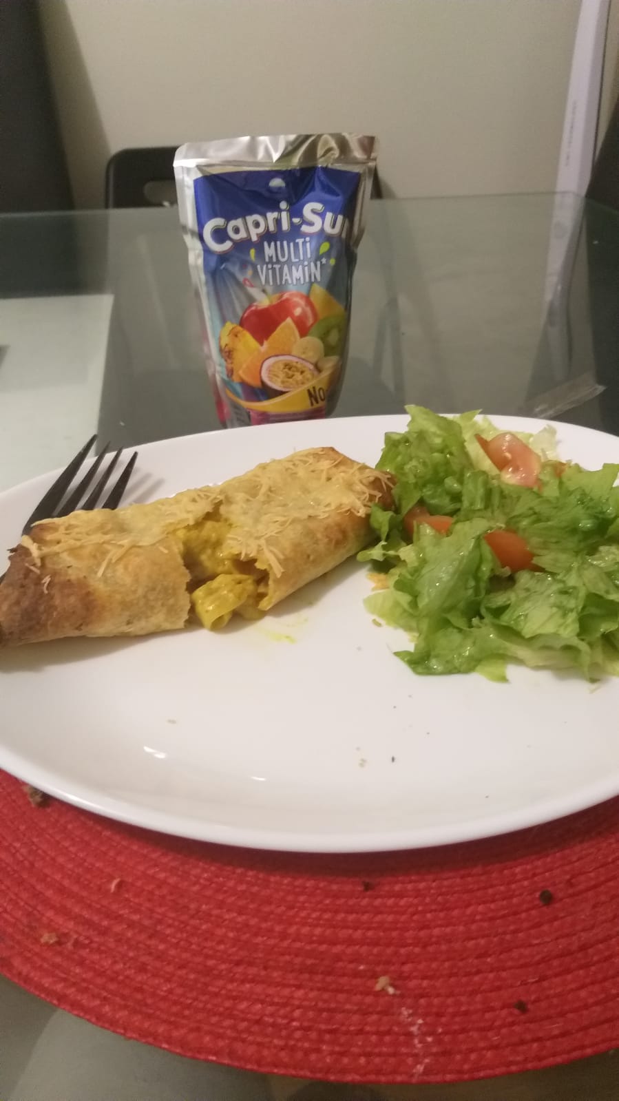Atelier autonomie. Juelson a souhaité apprendre à préparer des tacos au poulet-curry. Pour cela, il a coupé des oignons, des escalopes de poulet qu’il a ensuite fait revenir à la poêle. Il a ensuite fait une sauce au curry. Il a ensuite réalisé un pliage en règle après avoir garni sa galette de maïs. Le tout ira ensuite au four après une bonne couche de fromage râpé !!! un régal…
