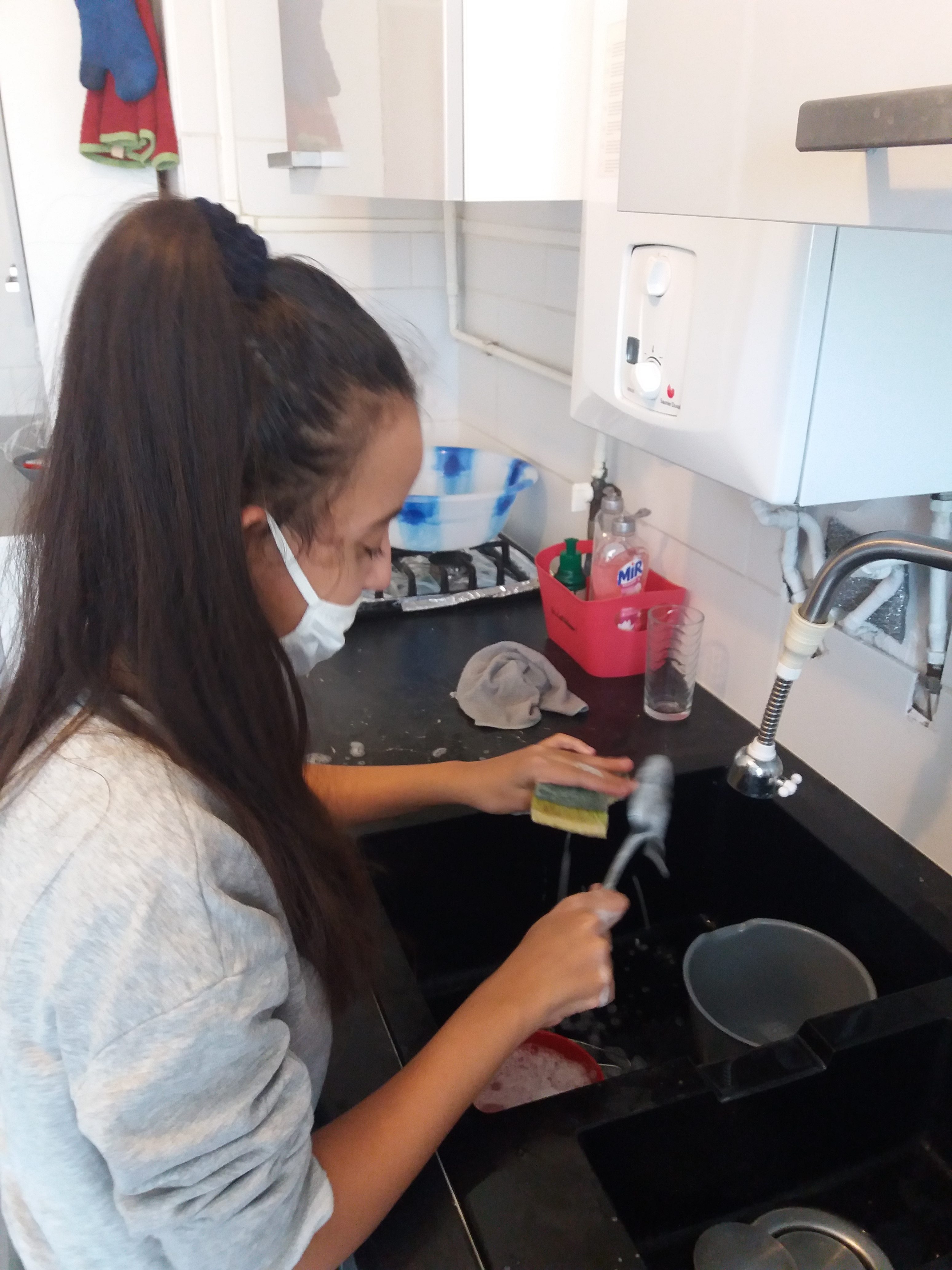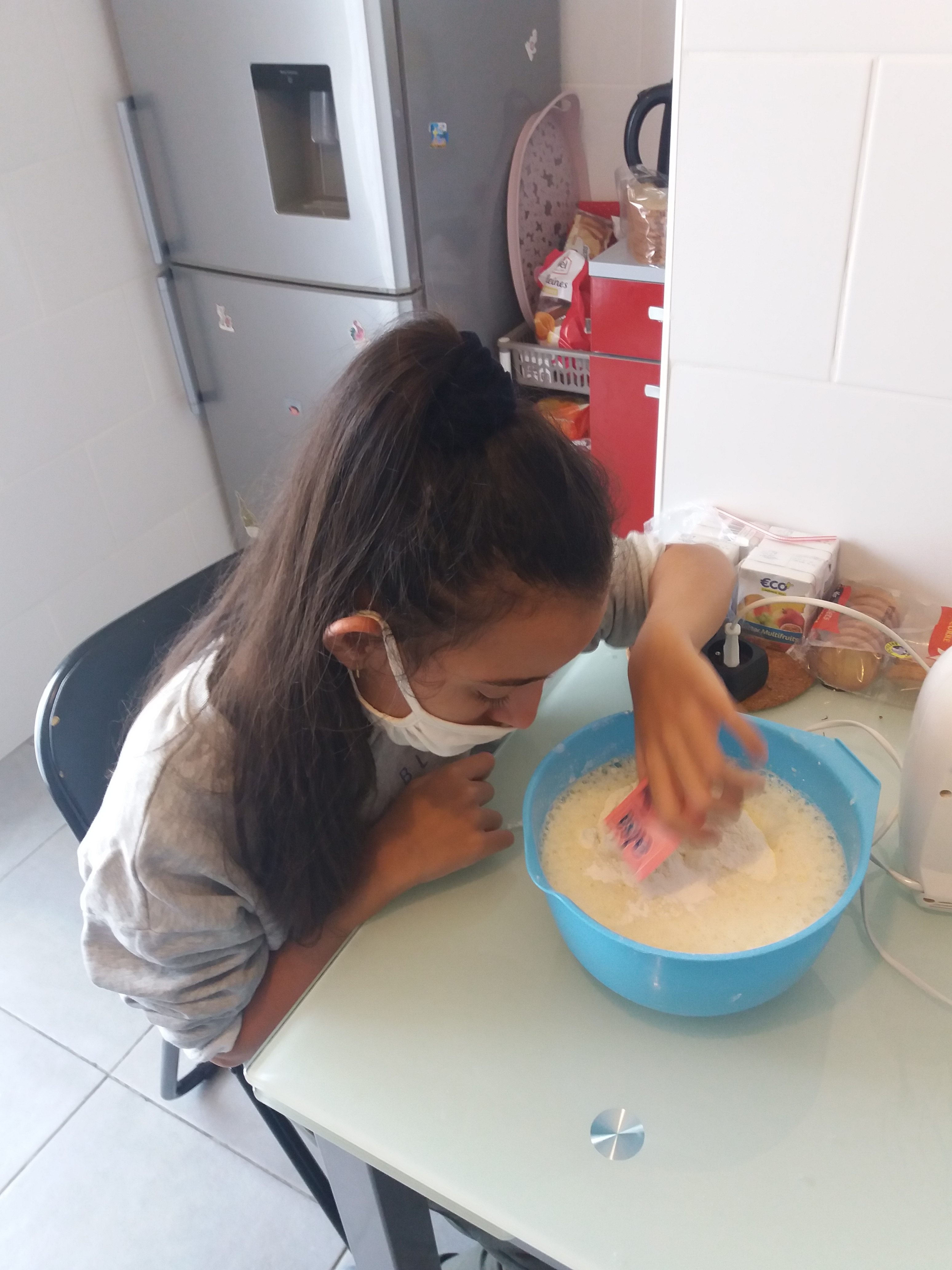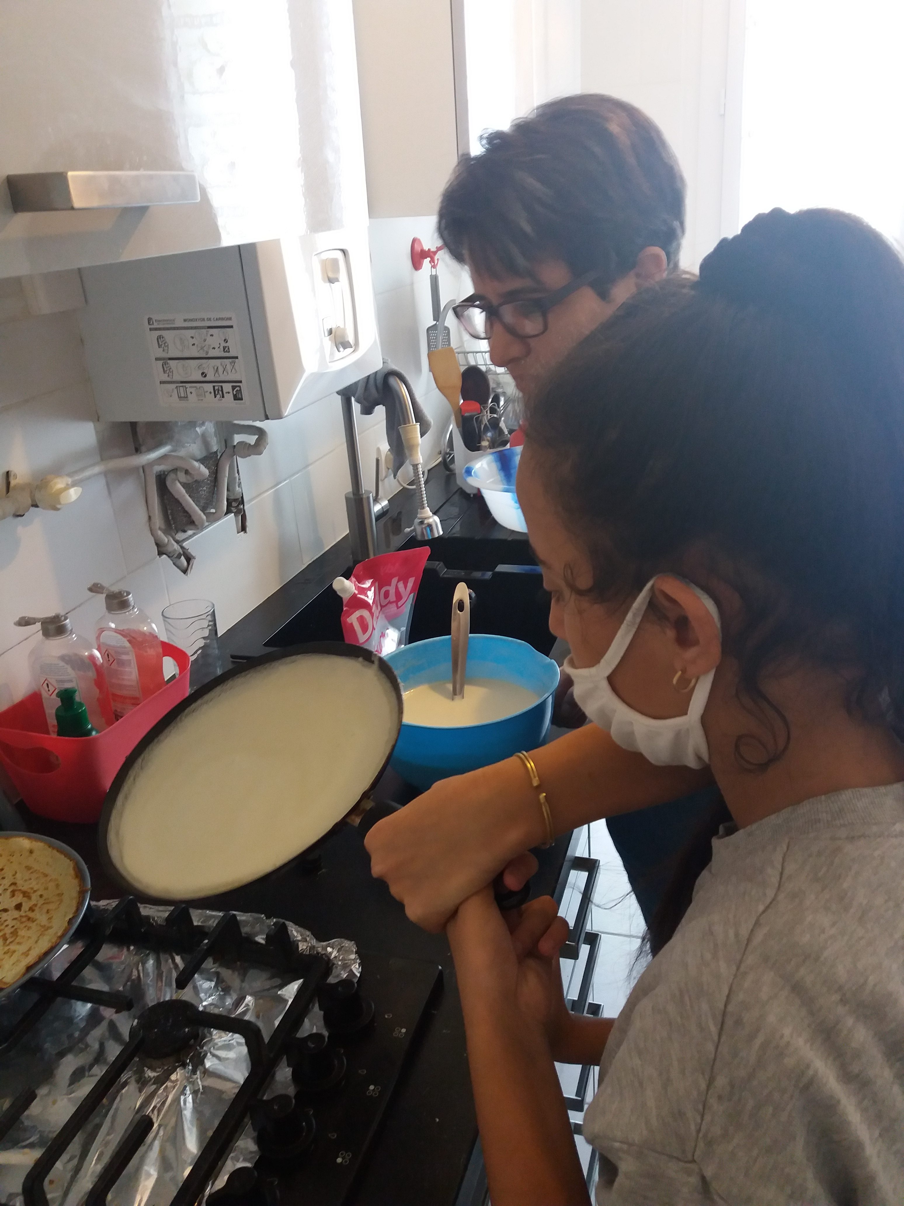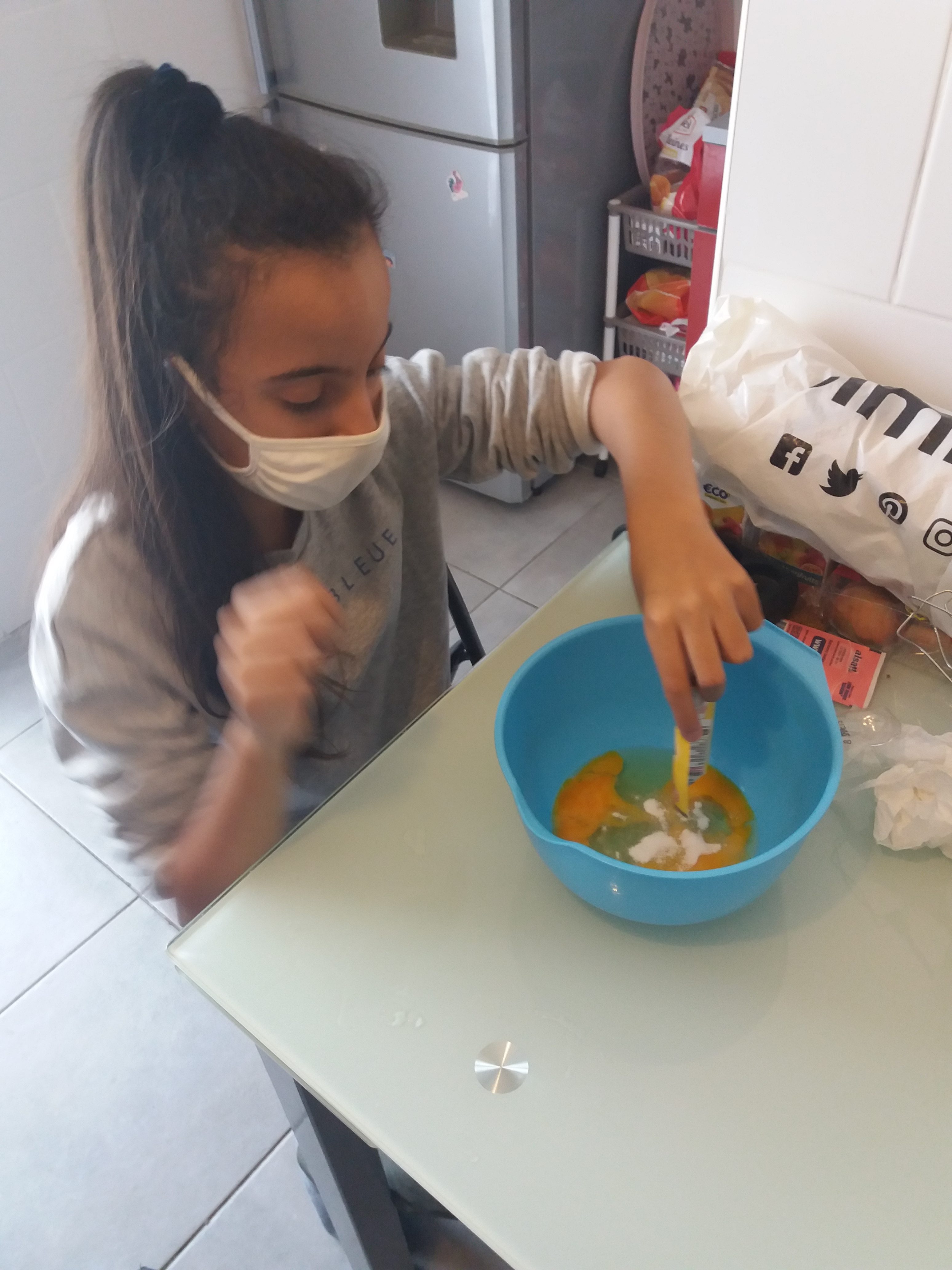 Au menu ce vendredi des crêpes selon la recette de maman. Célia a donc préparé une pâte à crêpe en suivant les conseils de sa maman. Elle lui a montré aussi sa technique de cuisson, tout est dans la rotation du poignet ! et bien sûr on n’oublie pas de nettoyer l’espace de travail et de faire la vaisselle. Un bon moment de cuisine en cette fin de semaine.