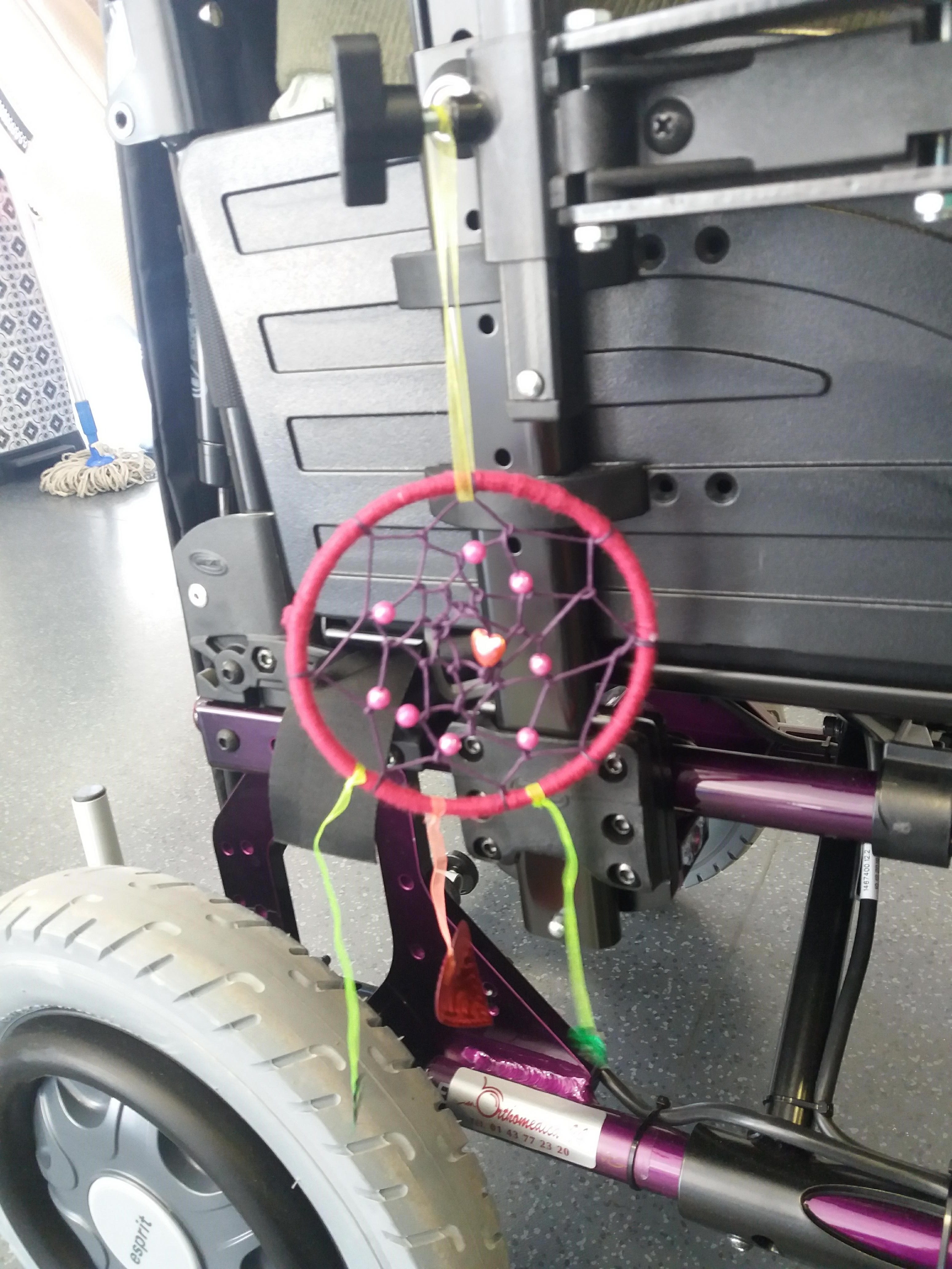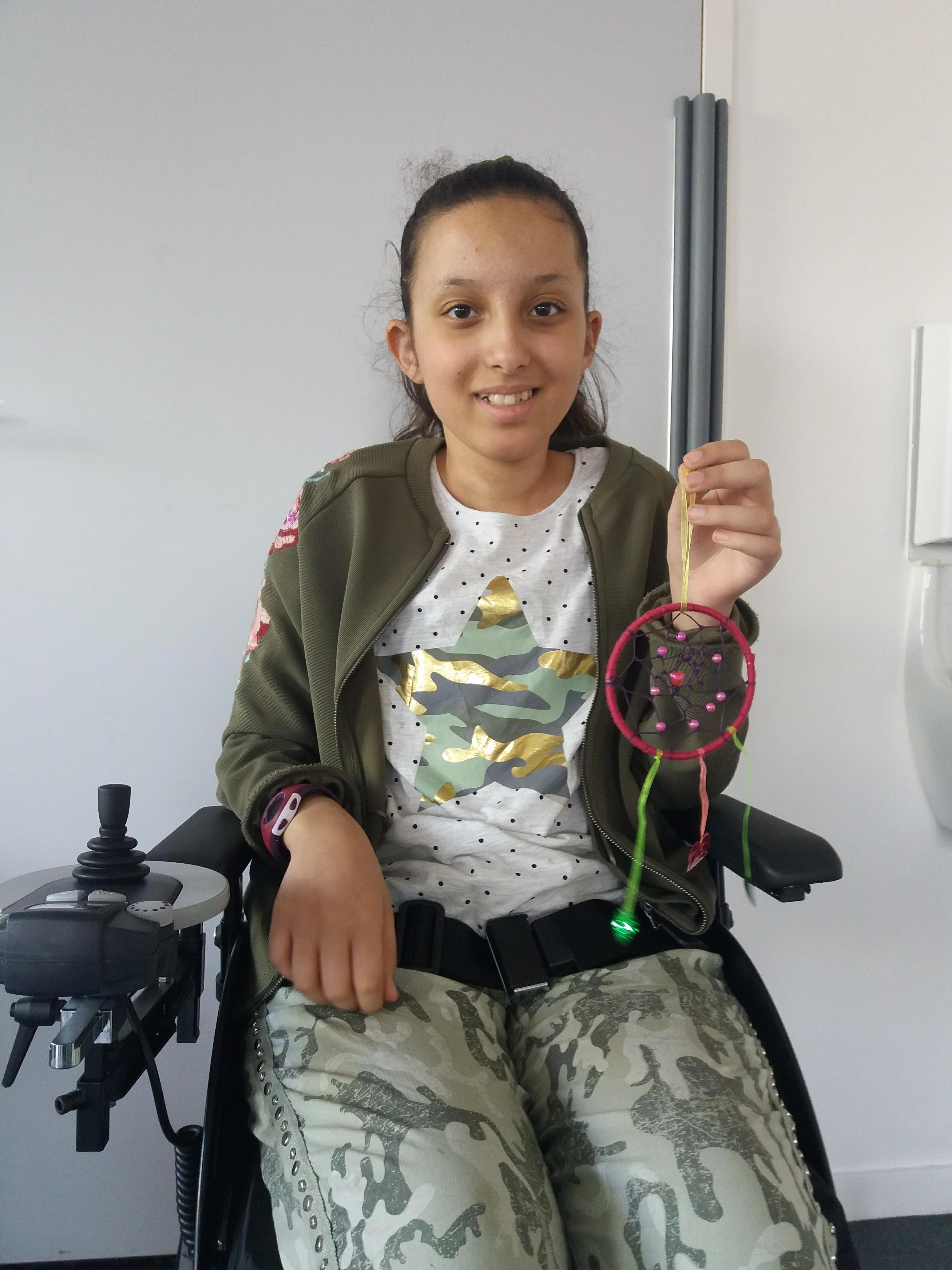 Déjeuner pour Wided et Wissal à la zone commerciale d’Eden à Servon. Elles en ont profitées pour manipuler leurs nouveaux fauteuils et Wided a fini de confectionner son attrape rêve pour décorer le fauteuil.