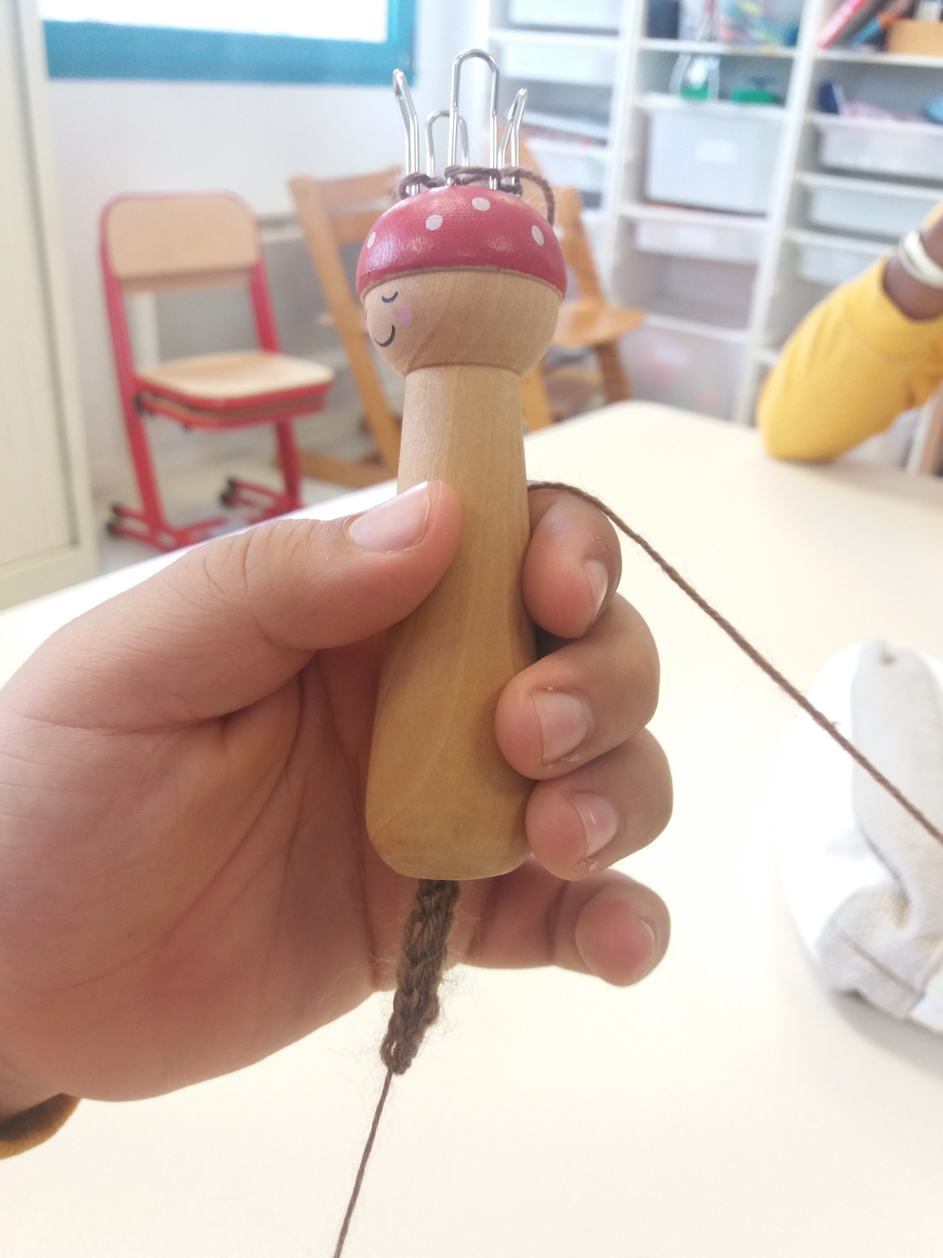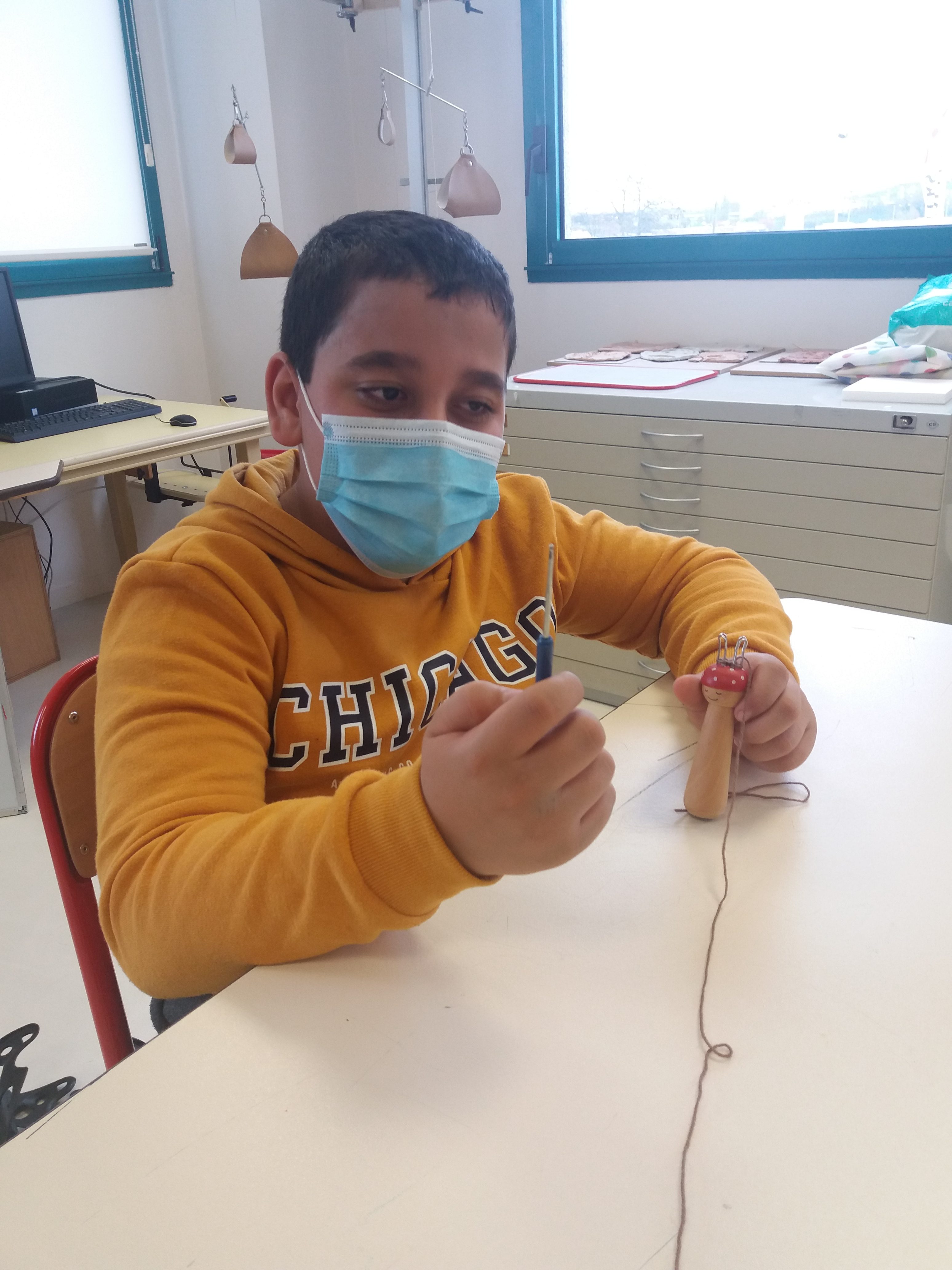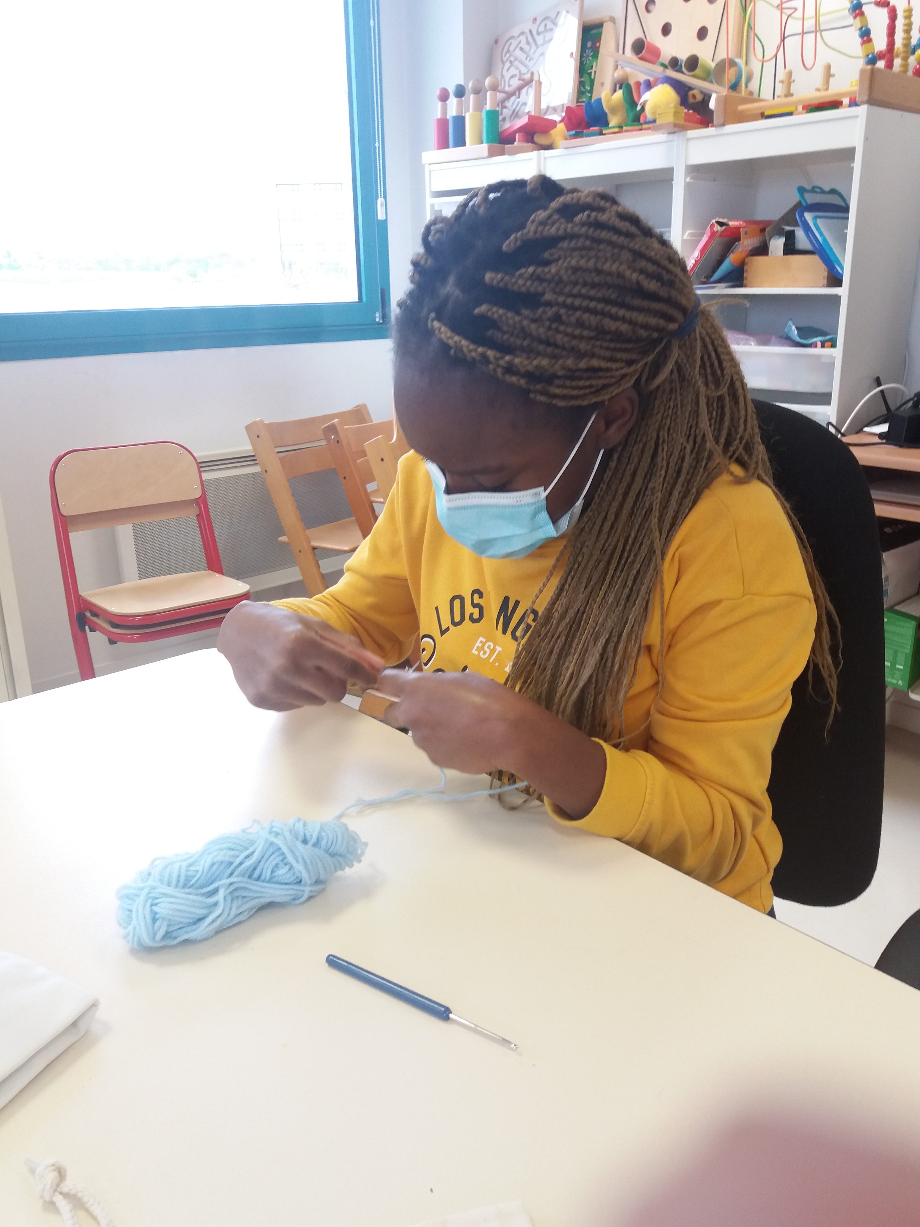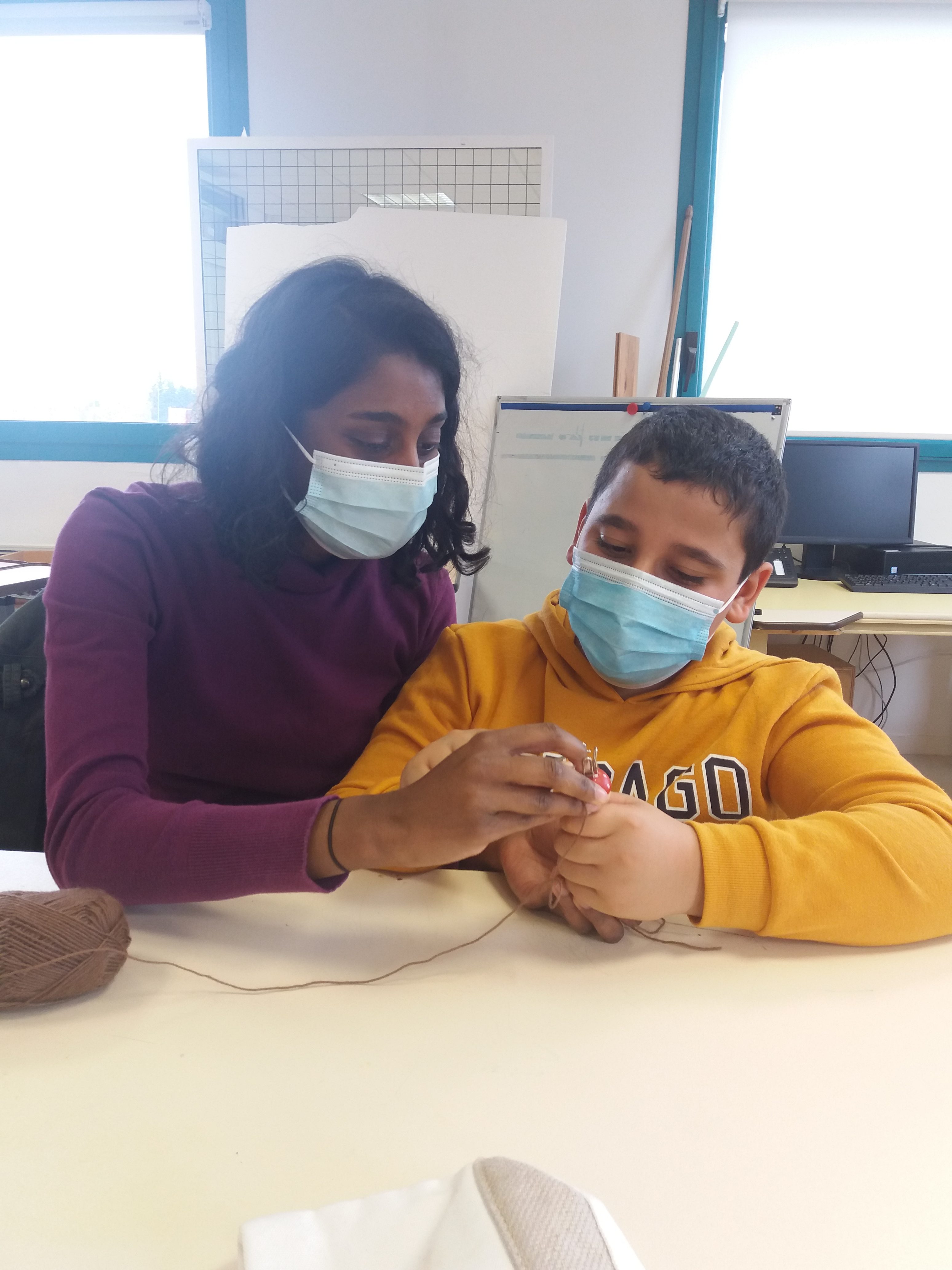 L’hiver approchant nous nous mettons au tricotin afin de confectionner un accessoire. Choix de la pelote de laine et premières mailles réalisées durant les 2 dernières séances.