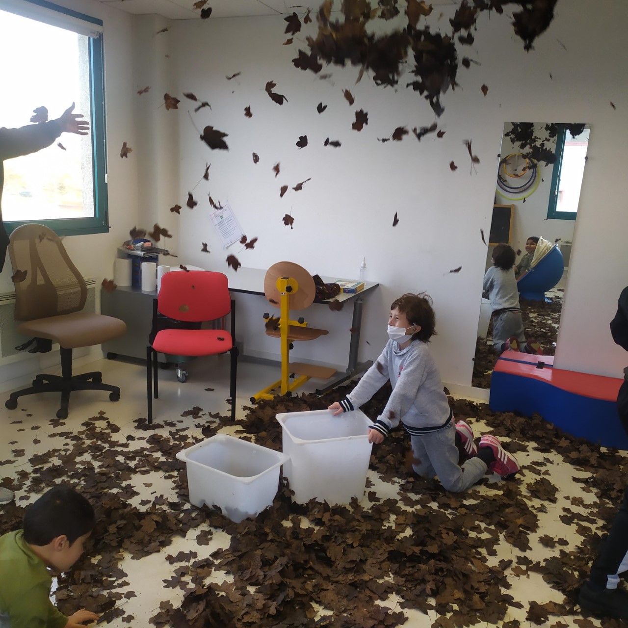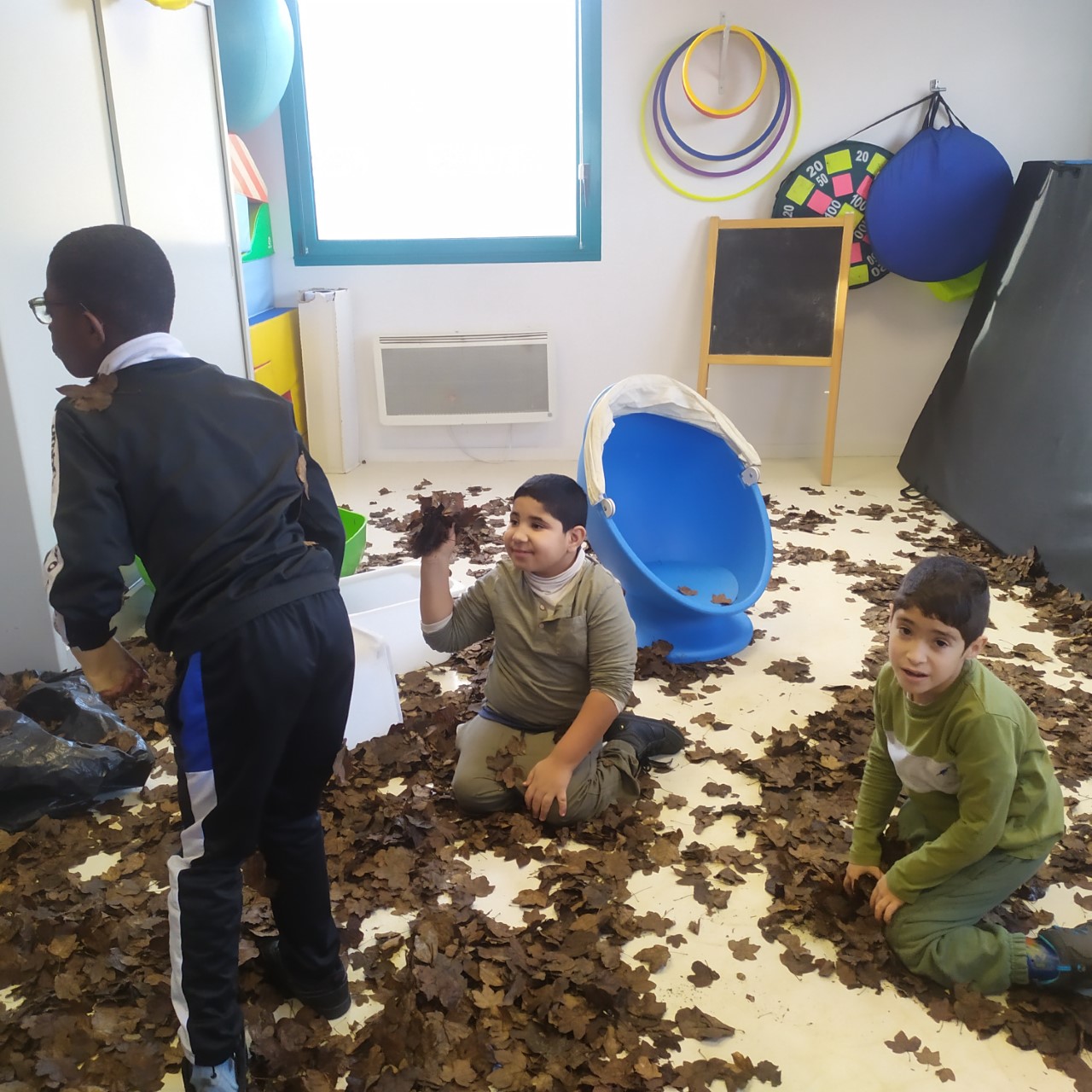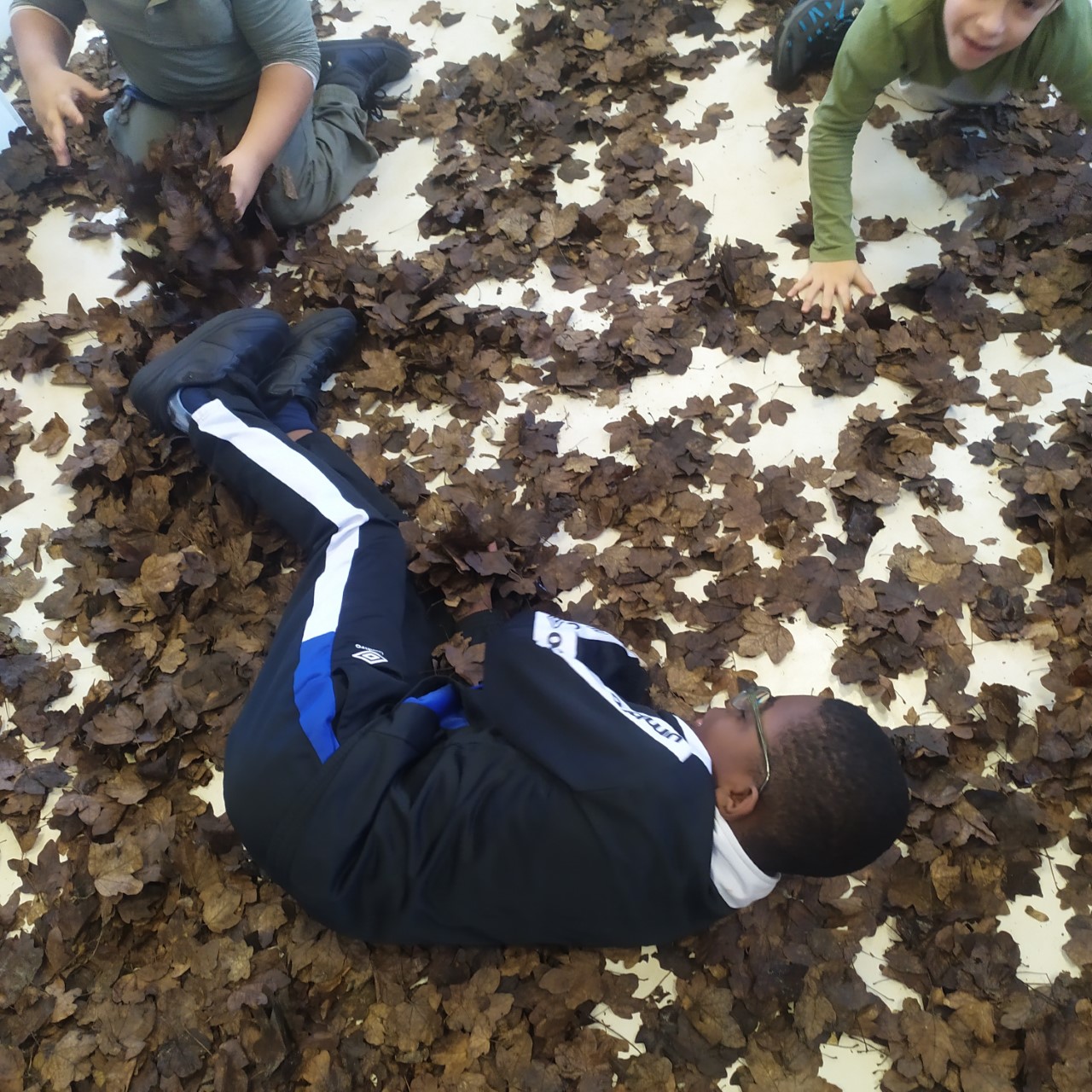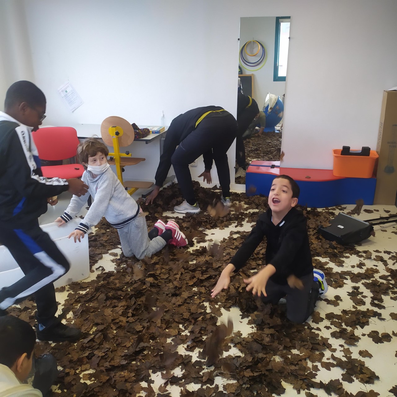 Les enfants du groupe jeux libres se sont défouler dans les feuilles mortes, un moment drôle et joyeux qu’ils ont partagé ensemble.
