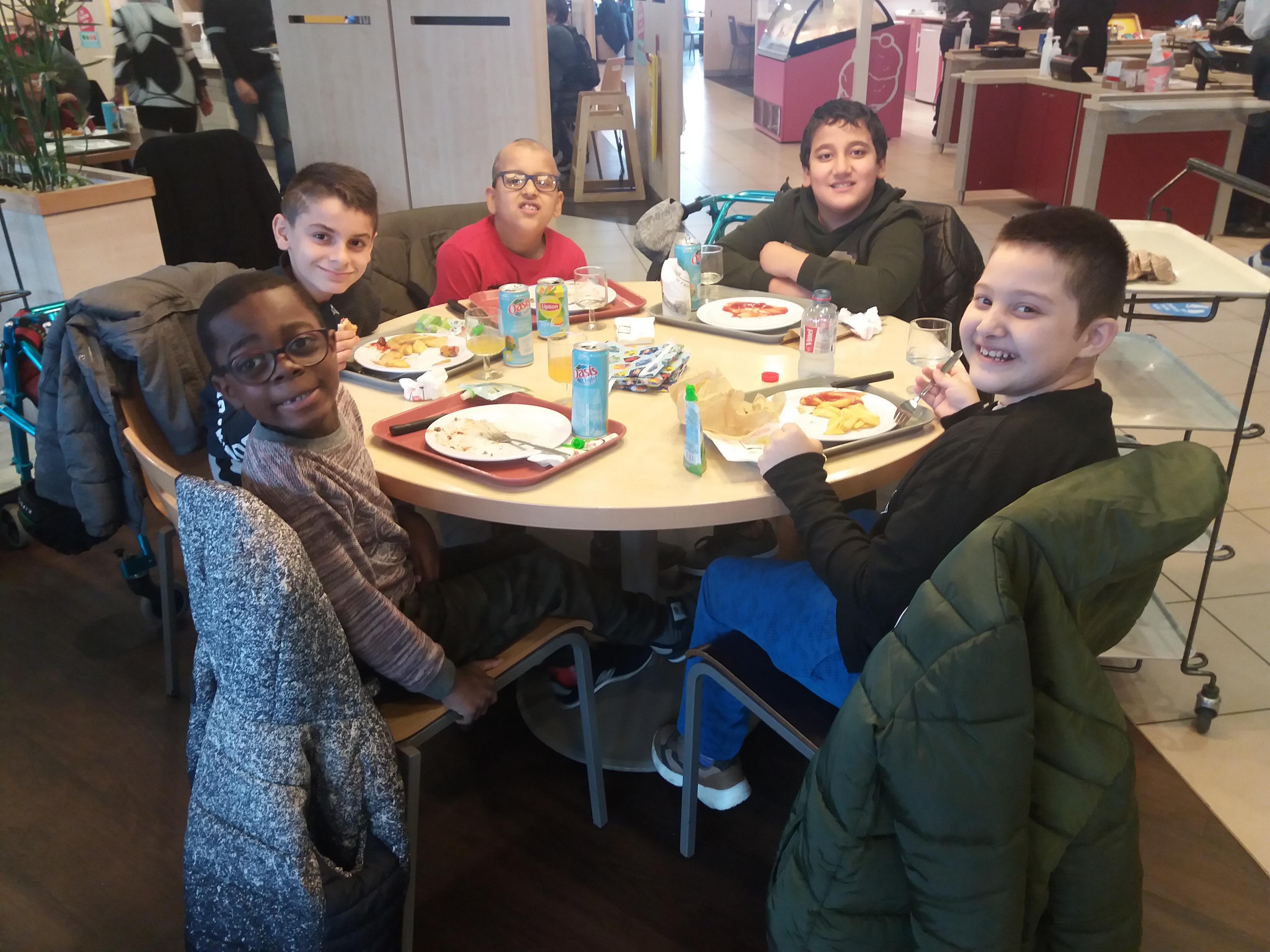 Déjeuner chez Flunch pour  une pause bien mérité avant l’après-midi pour une série de défis qui les attendent : la moustache de monsieur loyal, le funambule-pêcheur, la promenade du jongleur. Et pour finir la journée, une photo de groupe !