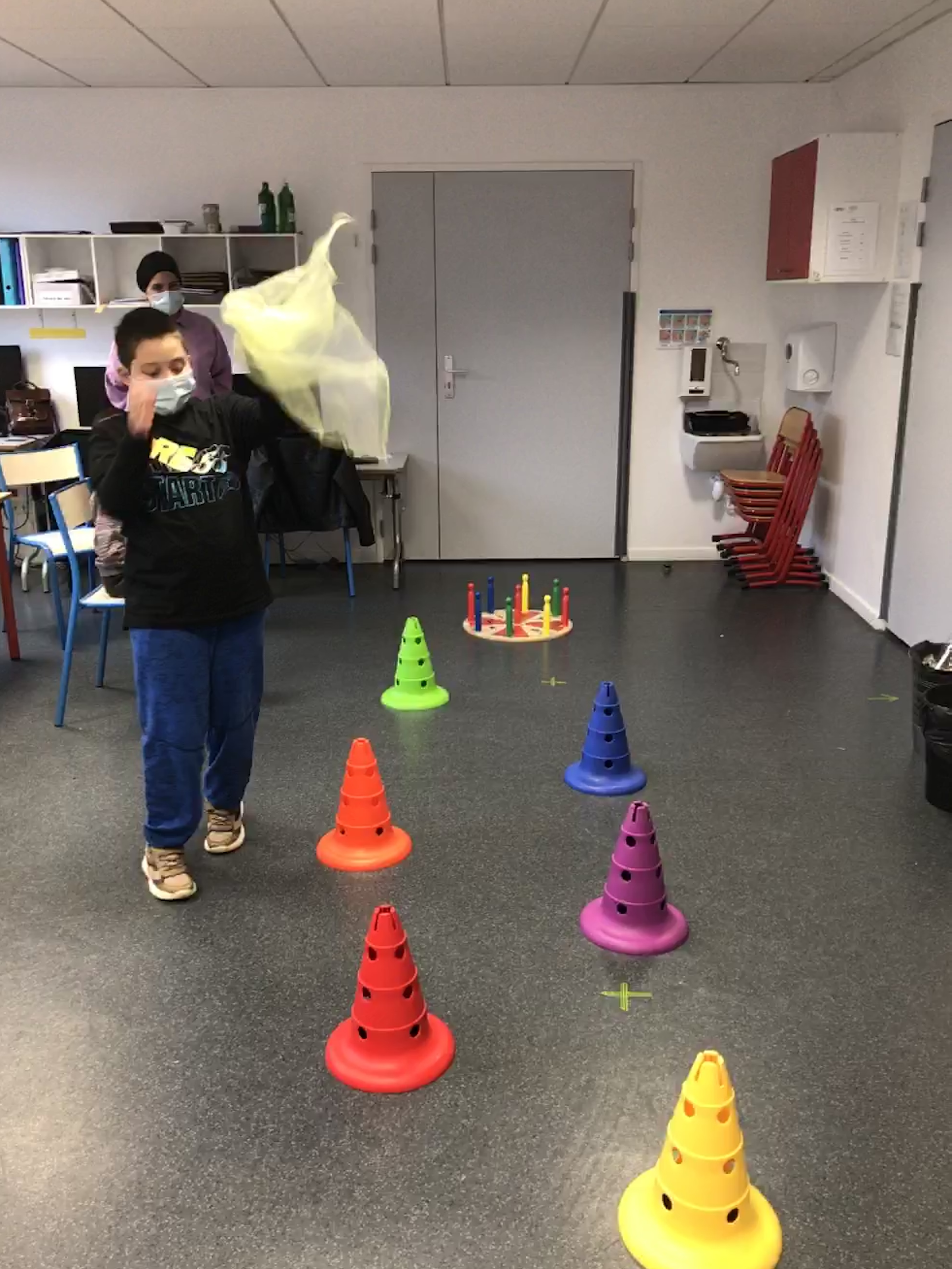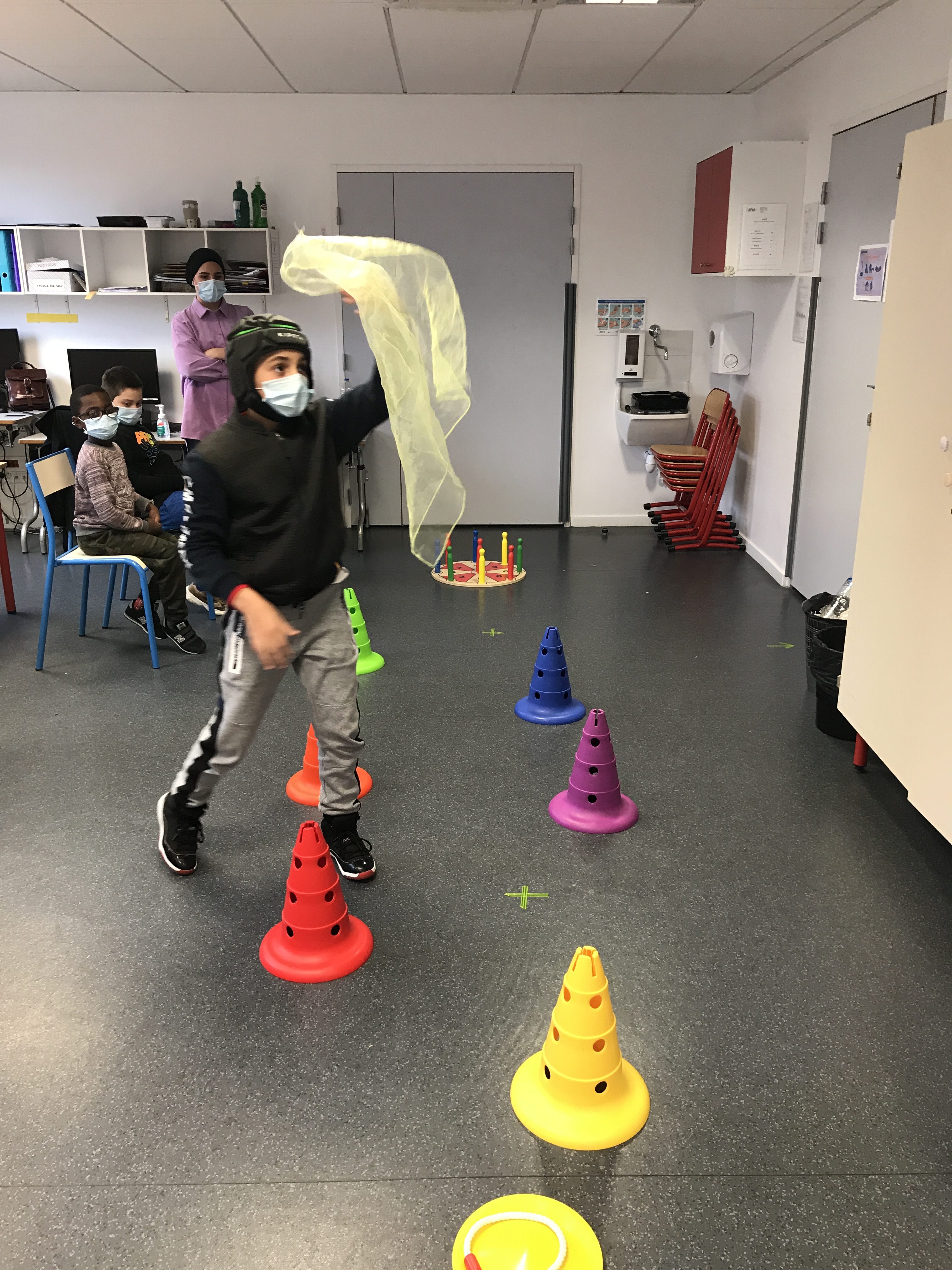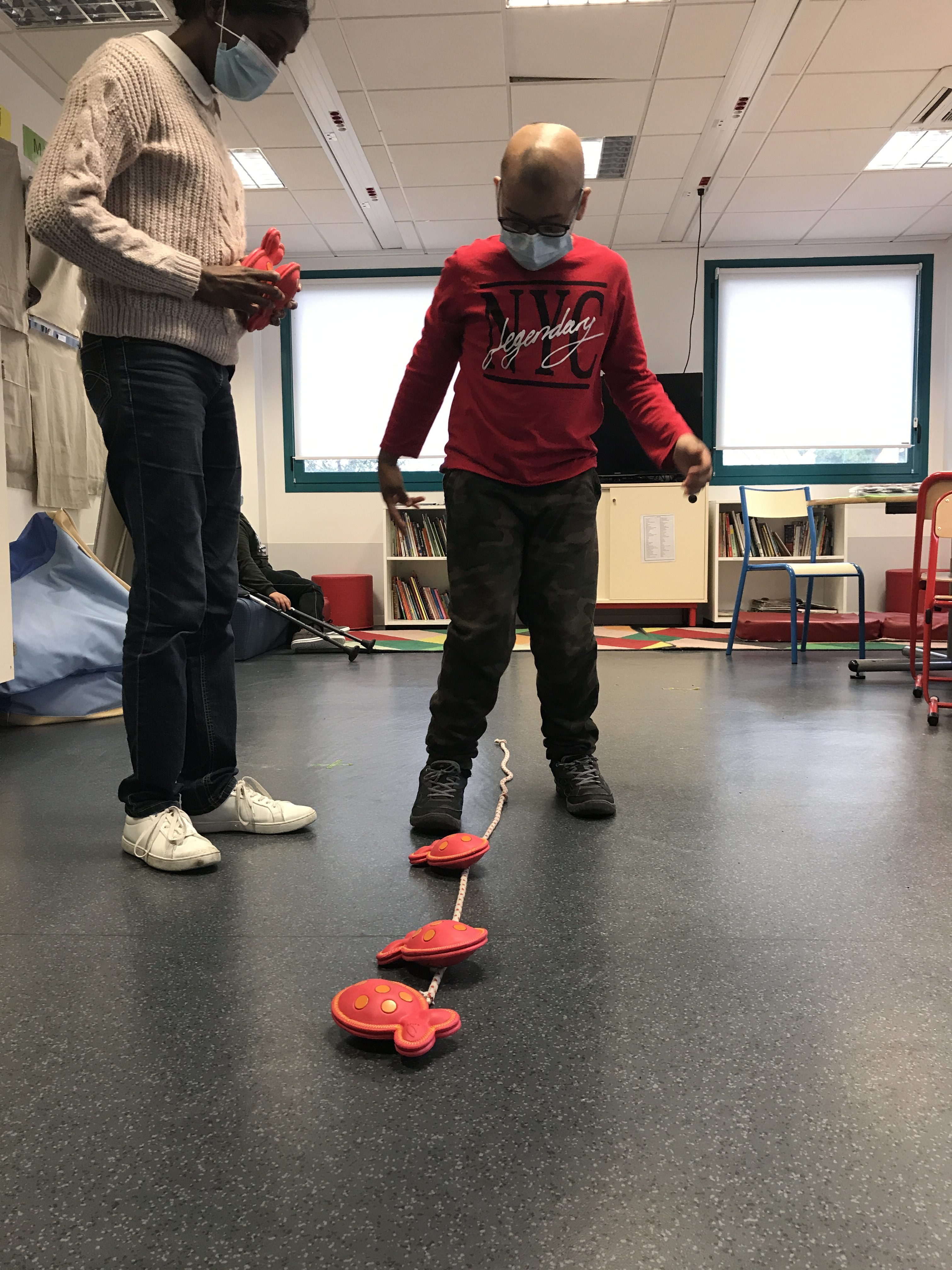 Ensuite nous avons travaillé les acrobaties (déboulés et roulades).
