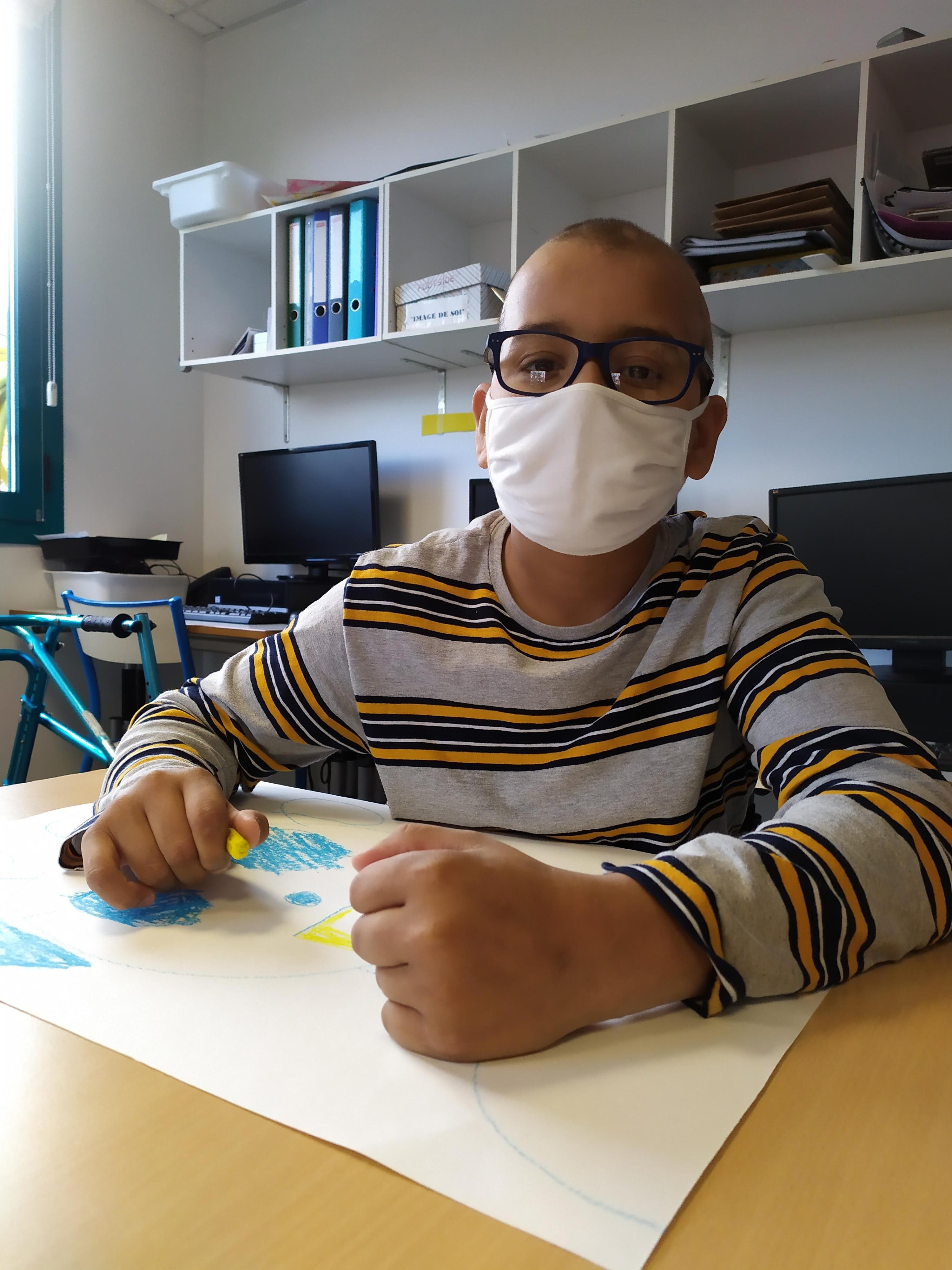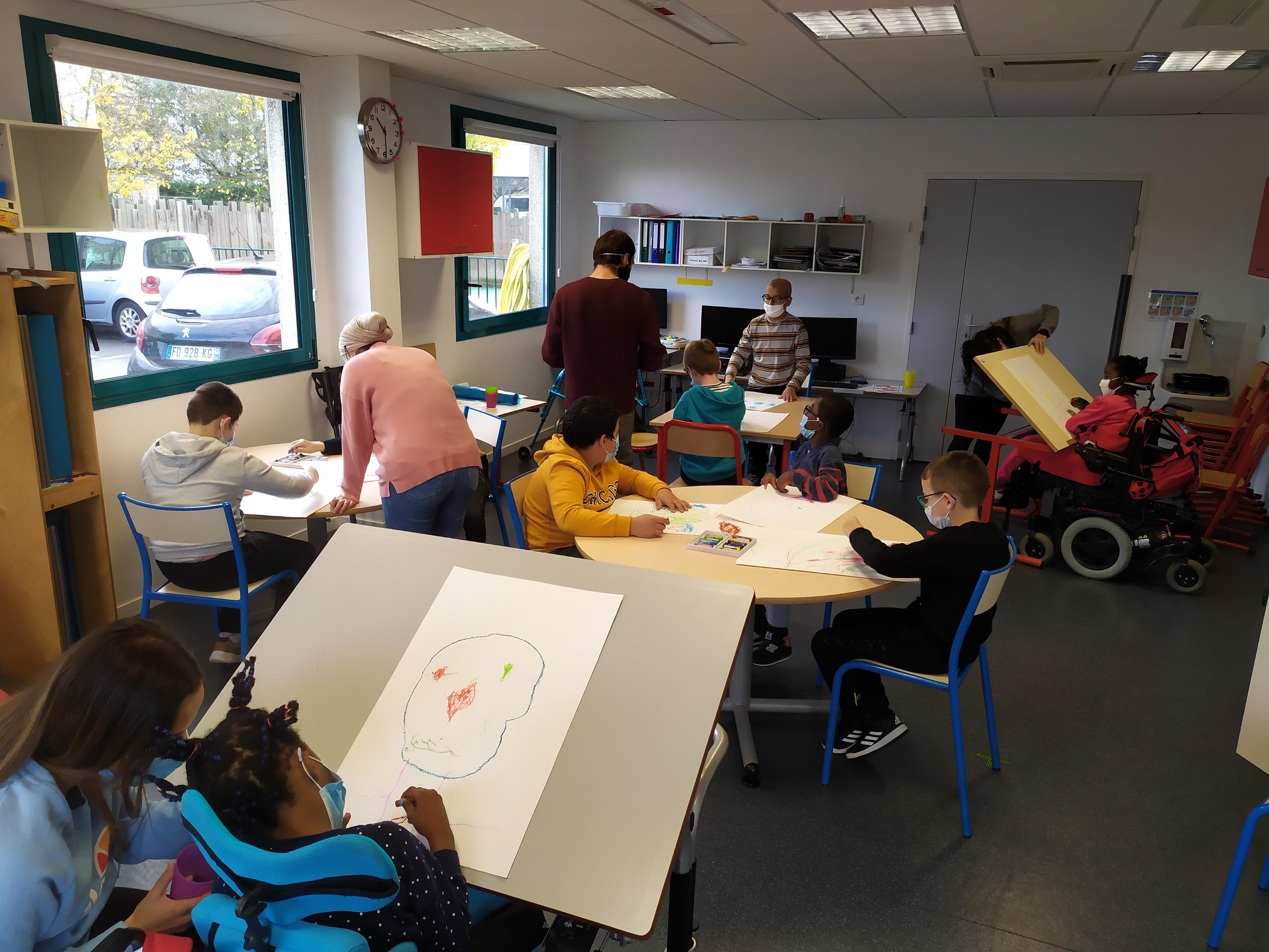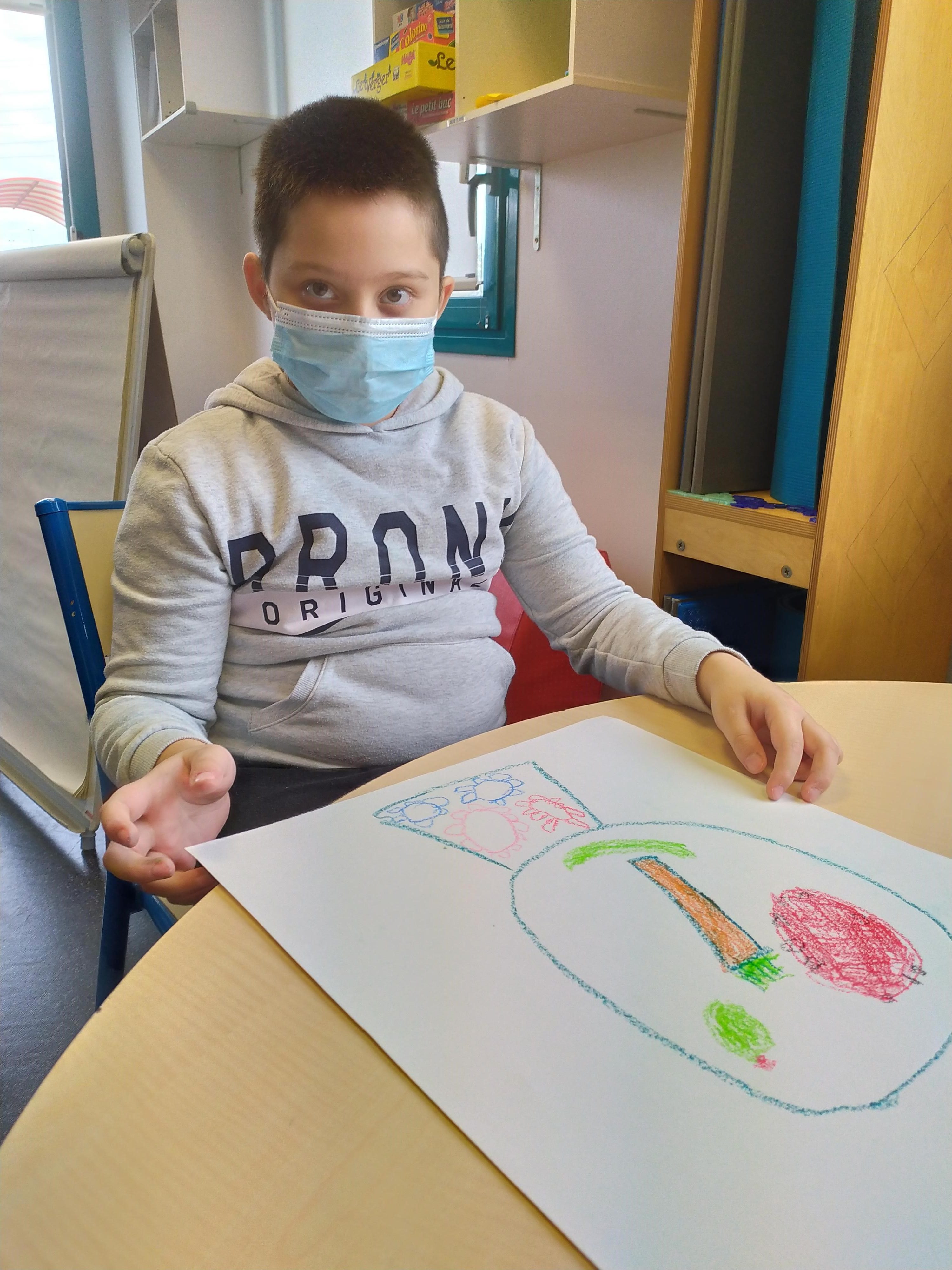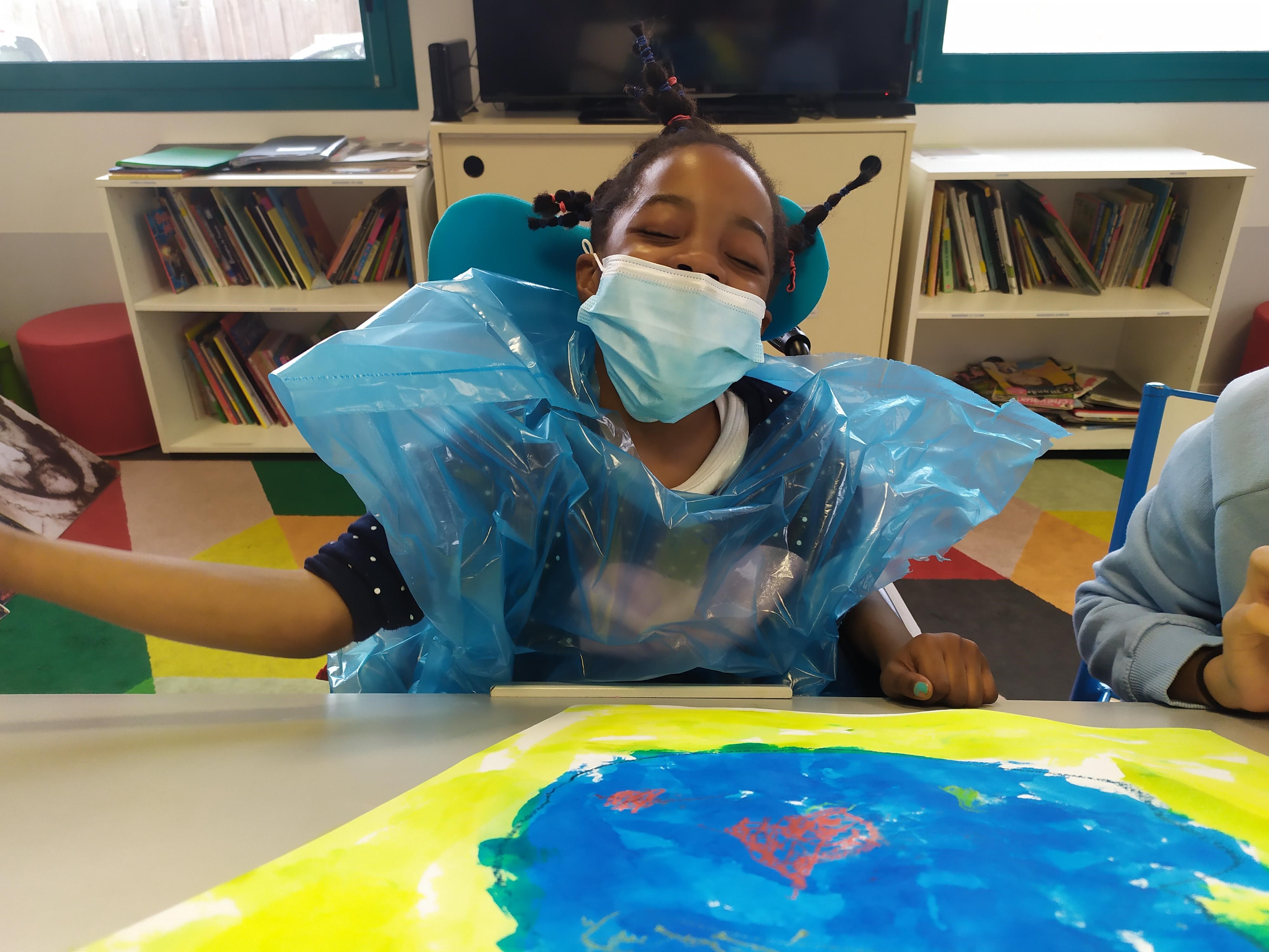 Aaron, Iyad, Gaspard, Sublime, Audrey, Jean, Rayan, Youcef ont créé leurs propres œuvres en s’inspirant de l’artiste. Les enfants ont utilisé des pastels et de l’encre pour les réalisations.
