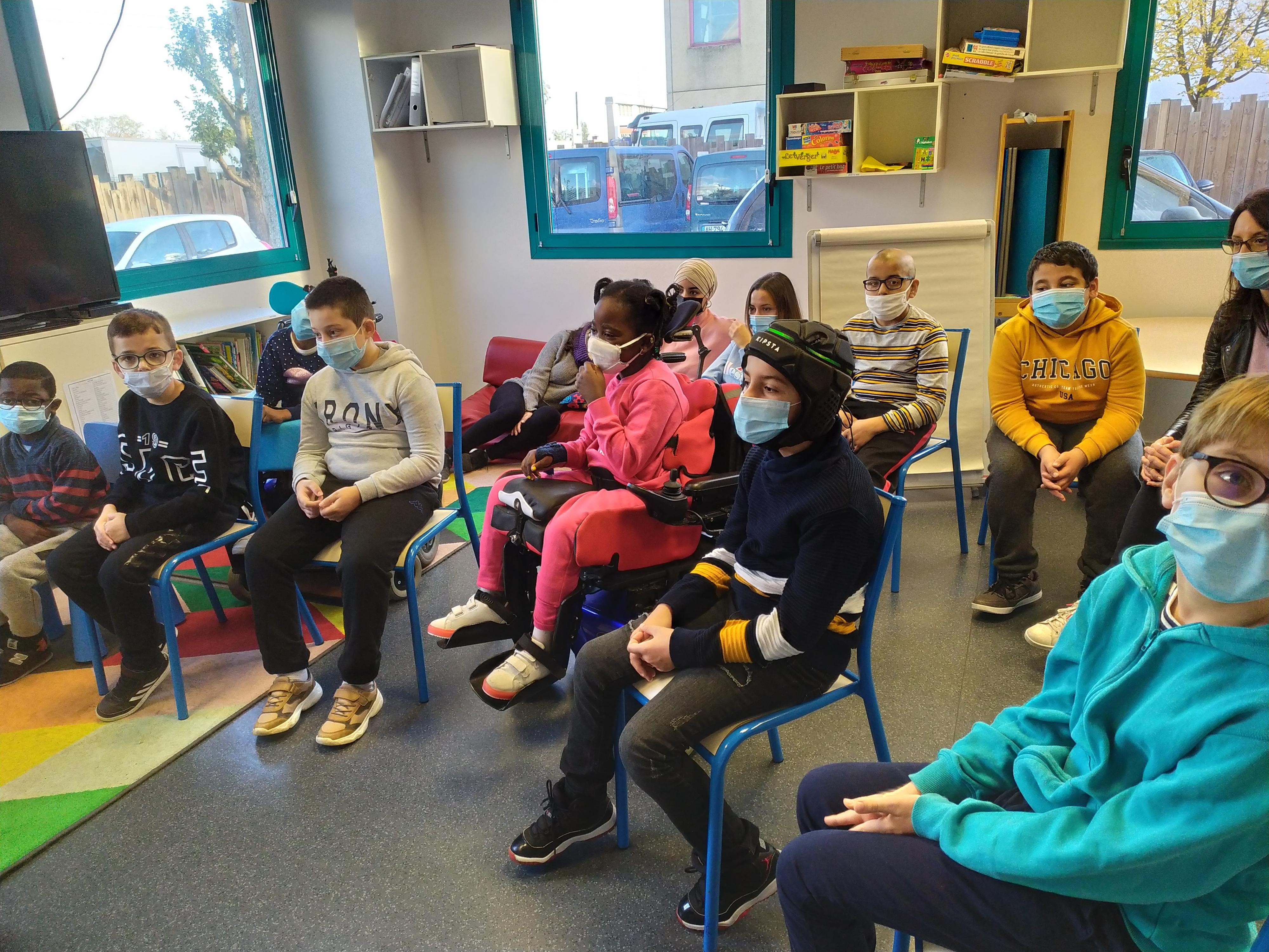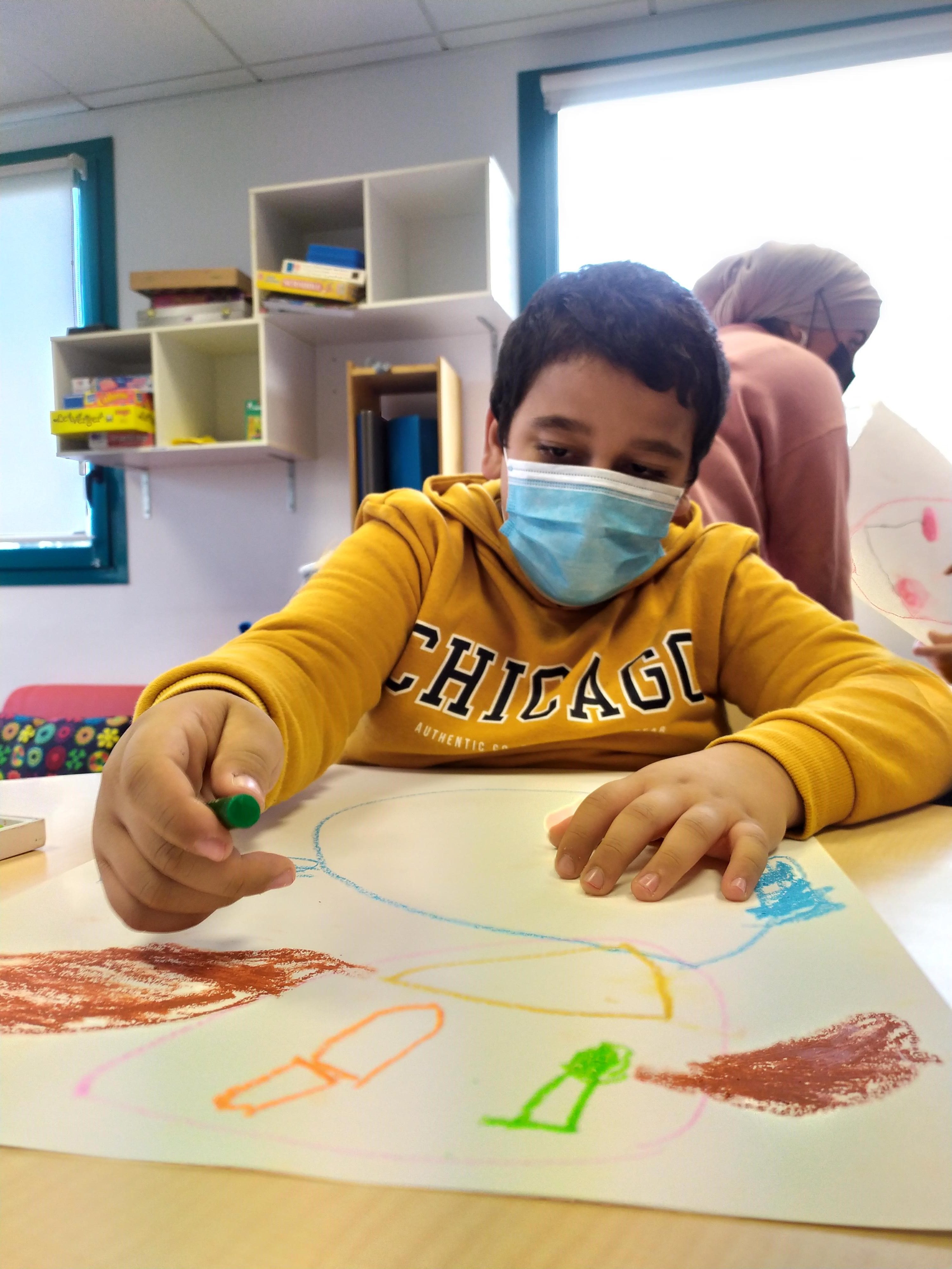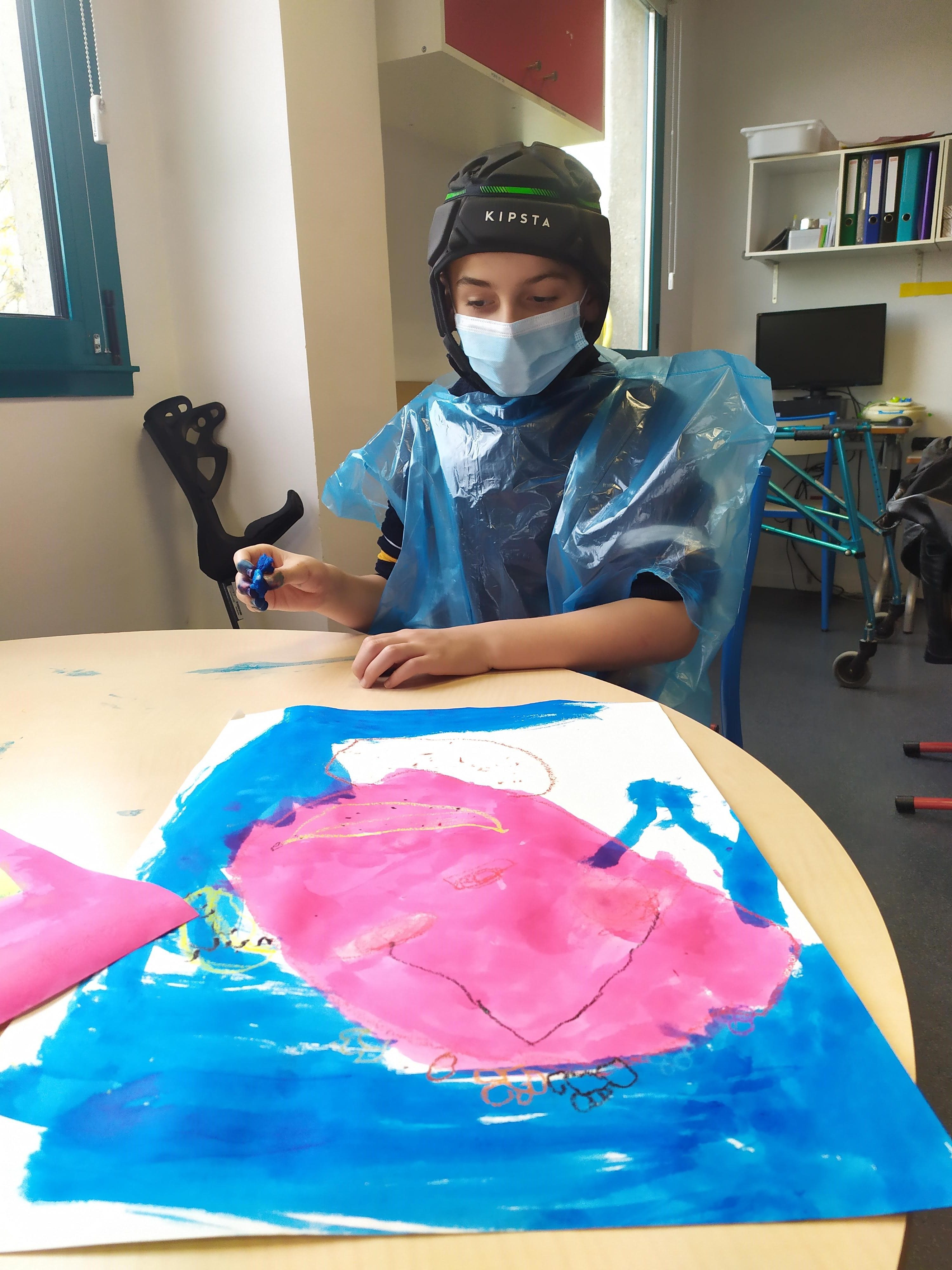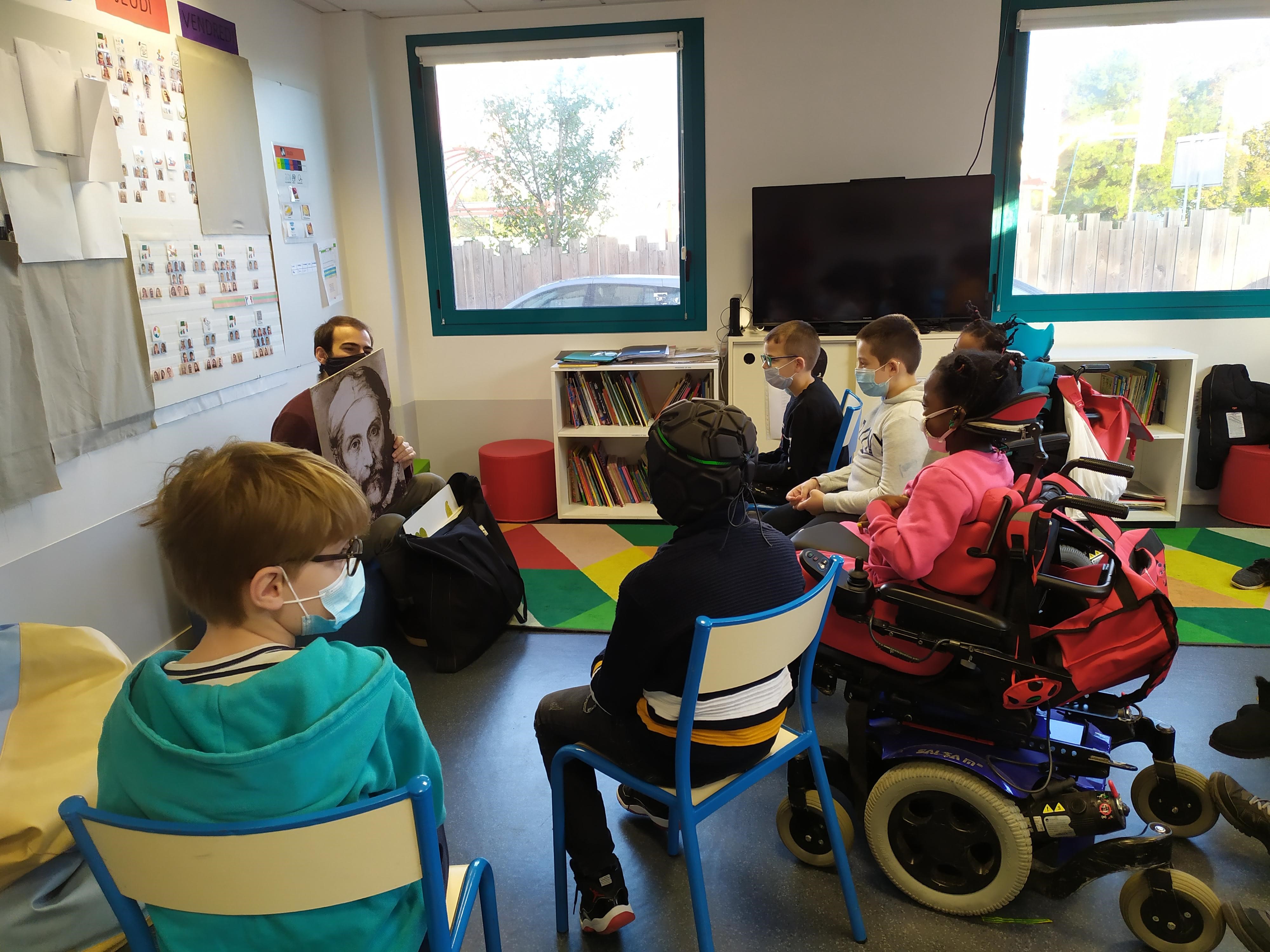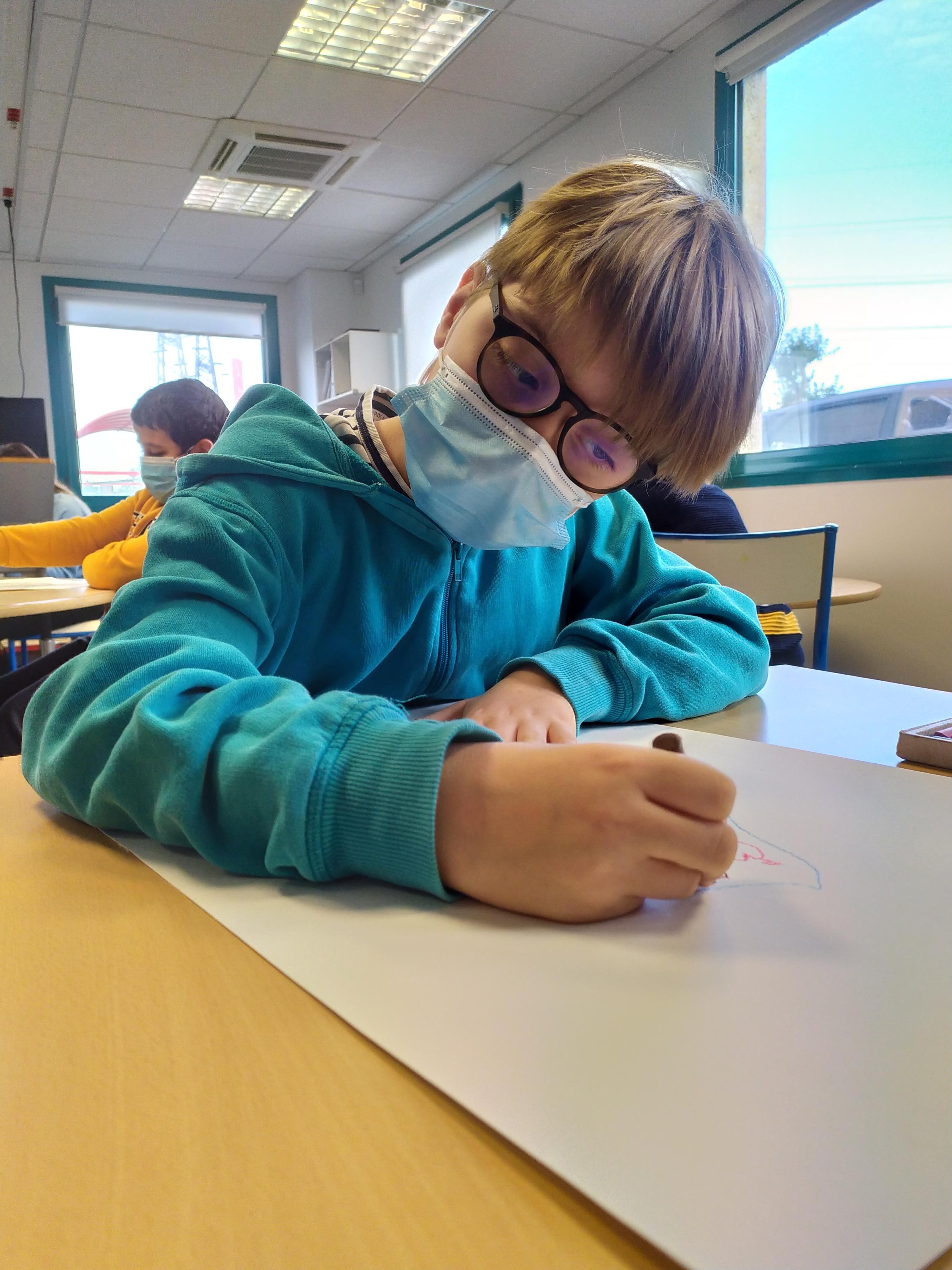 Aaron, Iyad, Gaspard, Sublime, Audrey, Jean, Rayan, Youcef ont créé leurs propres œuvres en s’inspirant de l’artiste. Les enfants ont utilisé des pastels et de l’encre pour les réalisations.