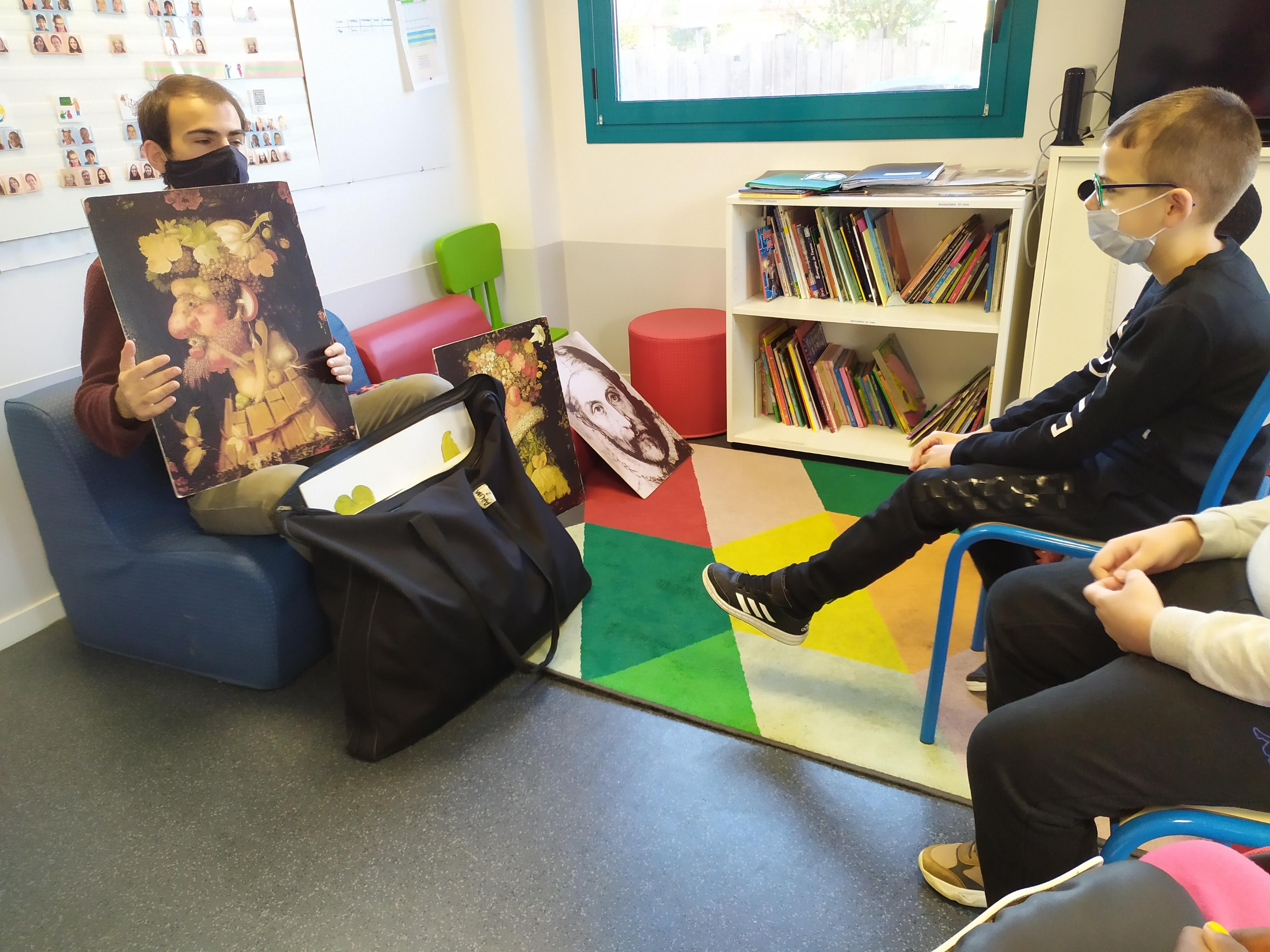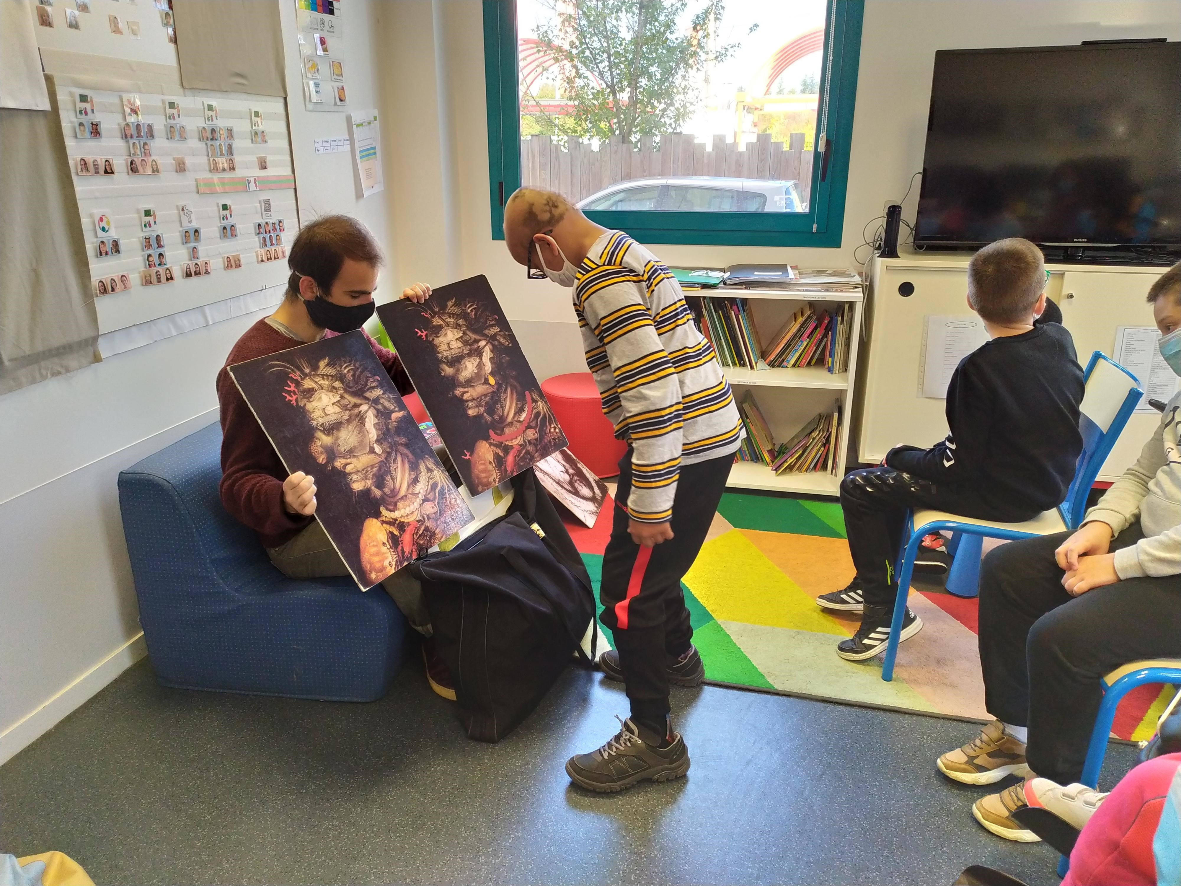 Jeudi matin, nous avons accueillis Lucas intervenant du musée en herbe pour nous présenter l’artiste Arcimboldi et ses compositions.
