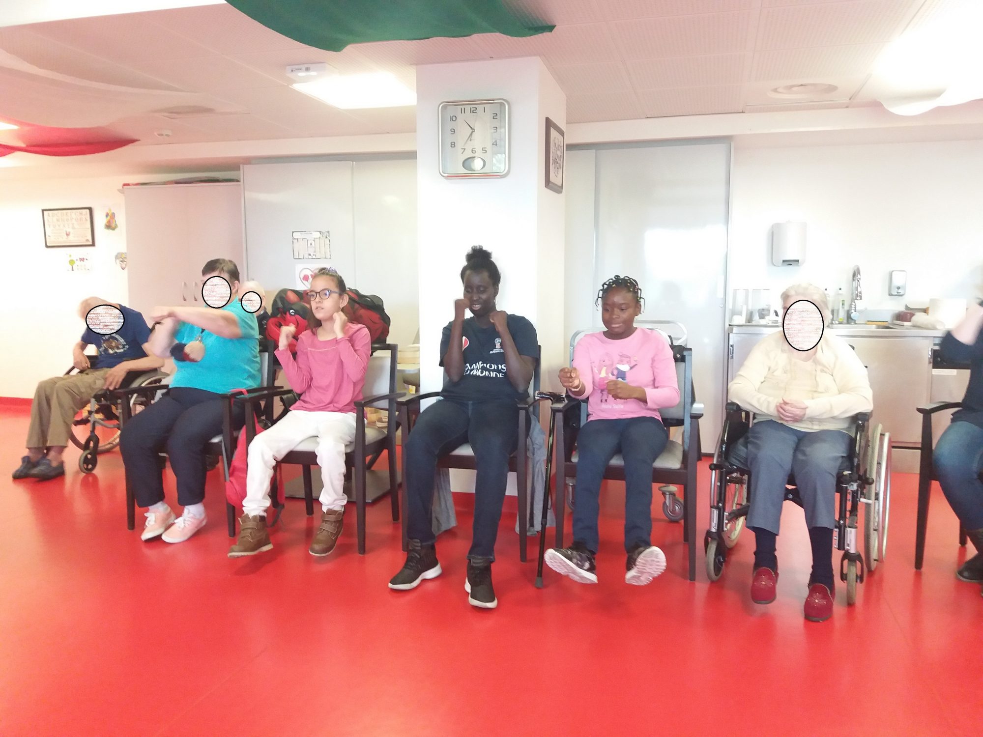 Comme chaque semaine d’activité un groupe de jeunes se rend à l’EHPAD pour partager une activité.