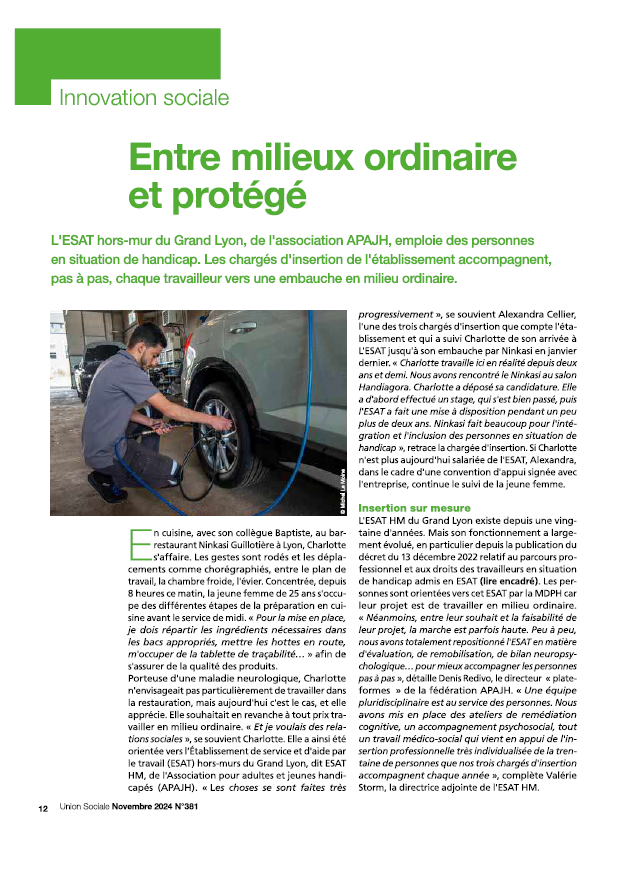 Merci à sa rédactrice Stéphanie BARZASI et son collègue photographe Michel LE MOINE pour la réalisation de ce beau reportage p12 et 13 de la revue l’Union Sociale de novembre 2024 – N°381. http://expertise.uniopss.asso.fr/section/unio_detail.html?publicationId=p6701730985489096
