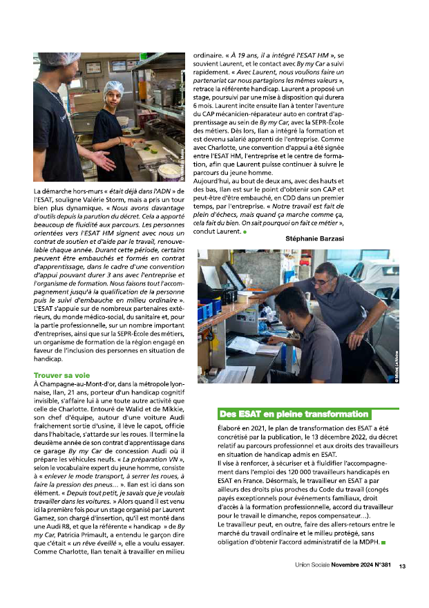 Deux beaux parcours inclusifs mis en vedette par la revue Union Sociale N°381 de Novembre.