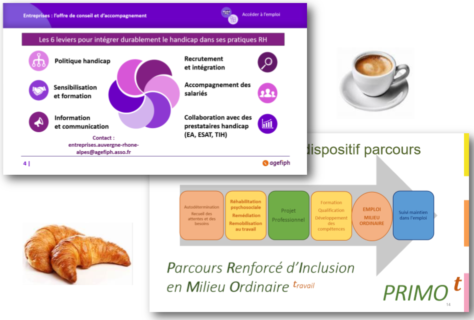 Entre café et viennoiseries, témoignages et présentations, une occasion exceptionnelle de partager ensemble les expériences, possibilités et dispositifs dédiés à inclusion professionnelle des personnes en situation de handicap.